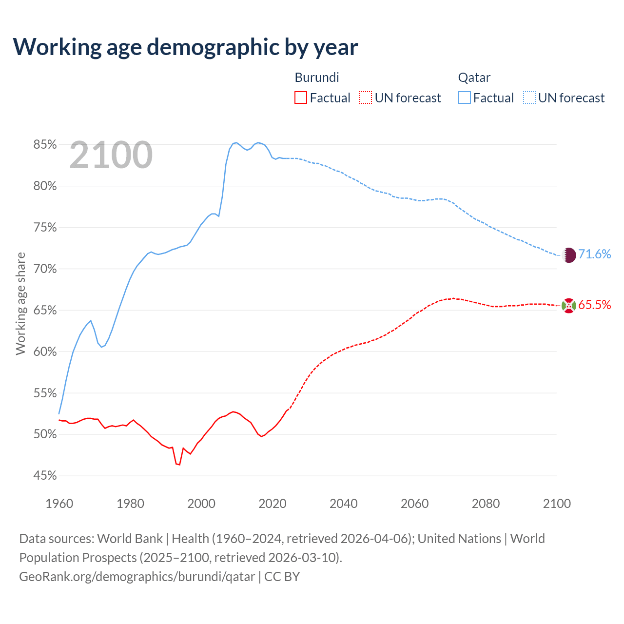 - Burundi has 7.83M working age adults (aged 15-64) vs 2.5M in Qatar.
