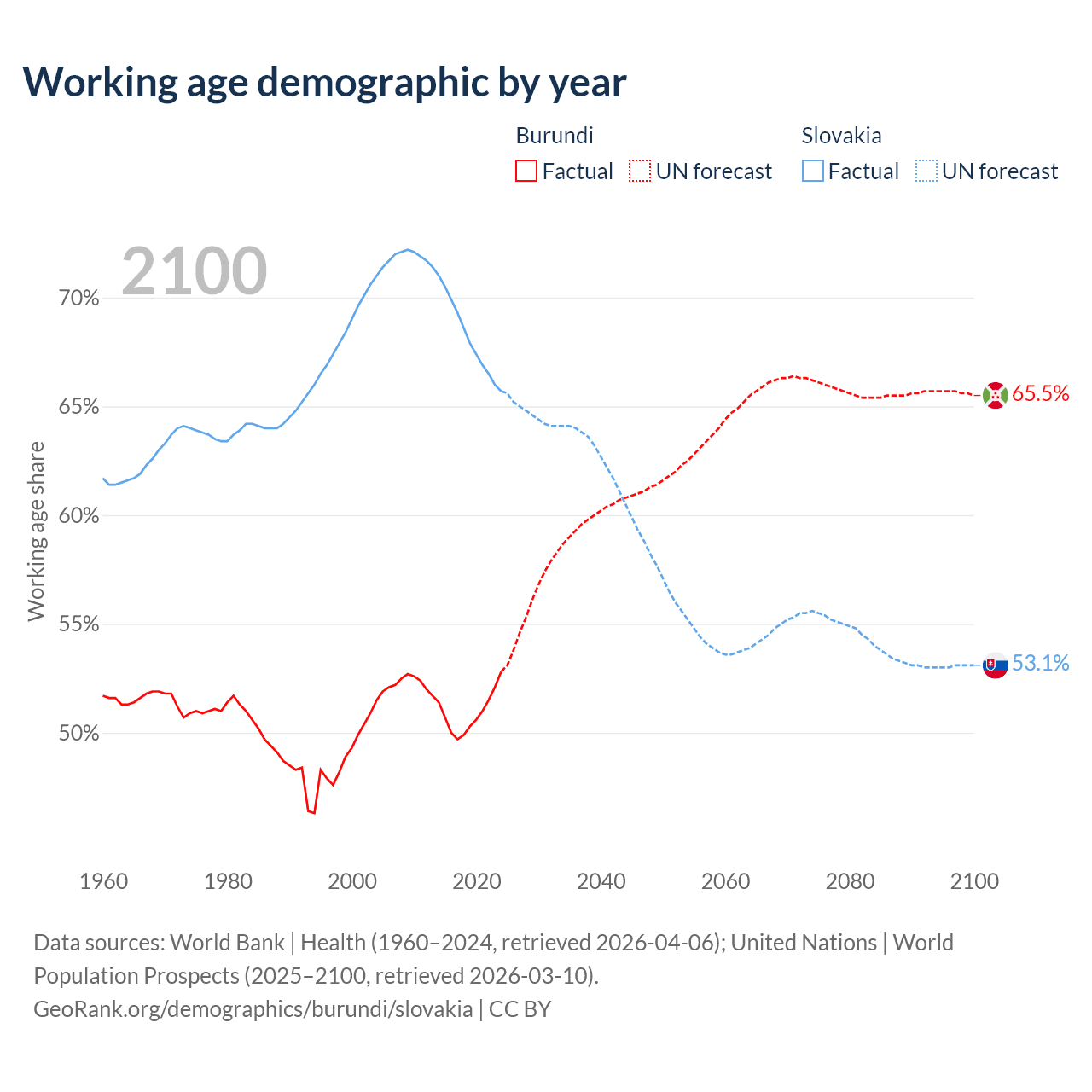 - Burundi has 7.83M working age adults (aged 15-64) vs 3.52M in Slovakia.