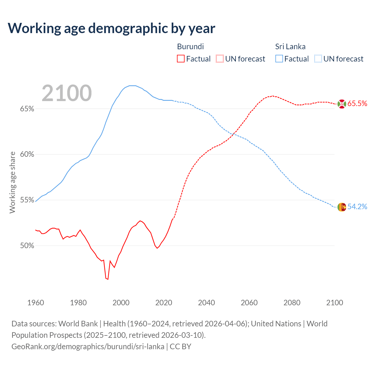 - As of 2026, the population of Burundi is 14.8M vs 22.2M in Sri Lanka - 1.5 times difference.