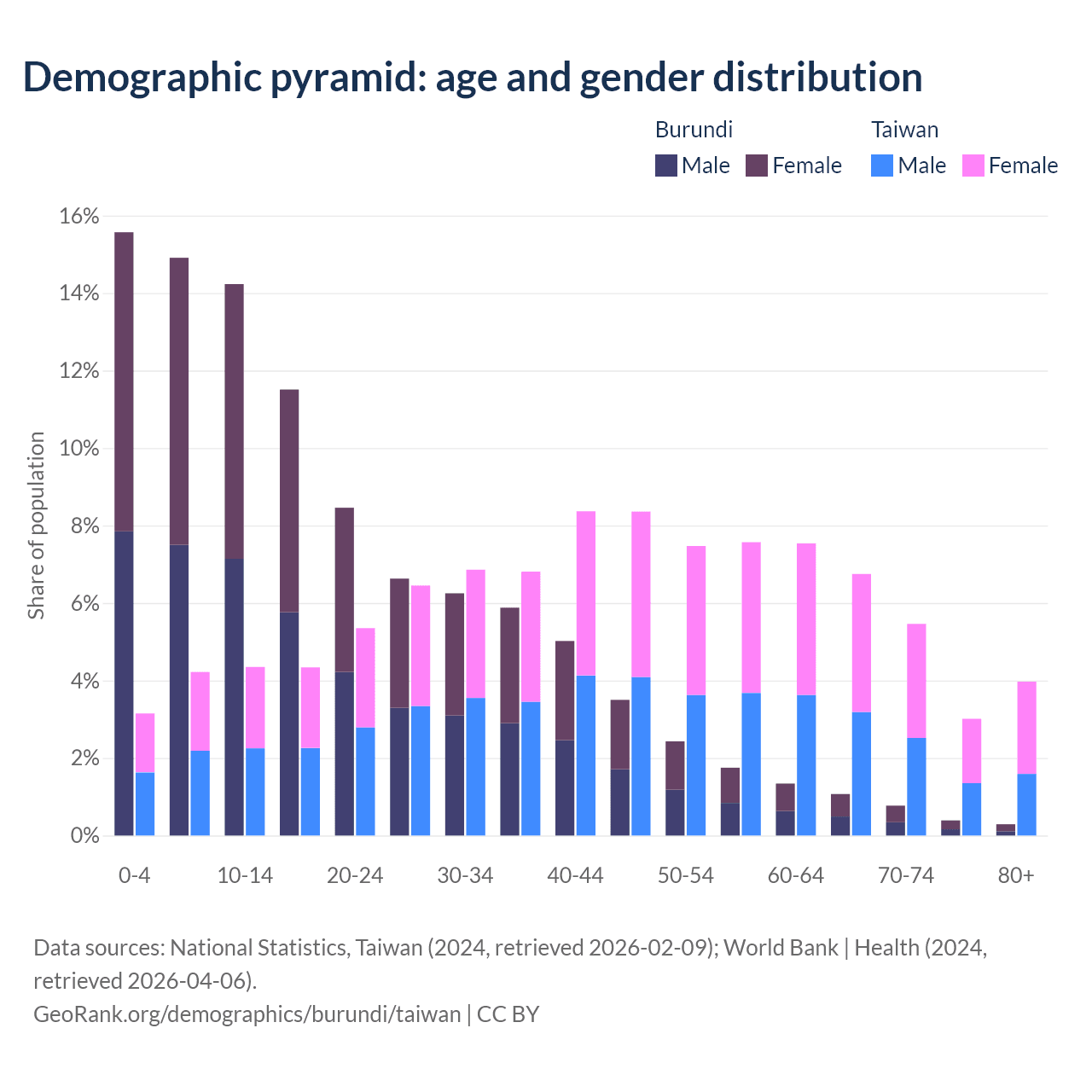 Demographics of Burundi compared to Taiwan:
