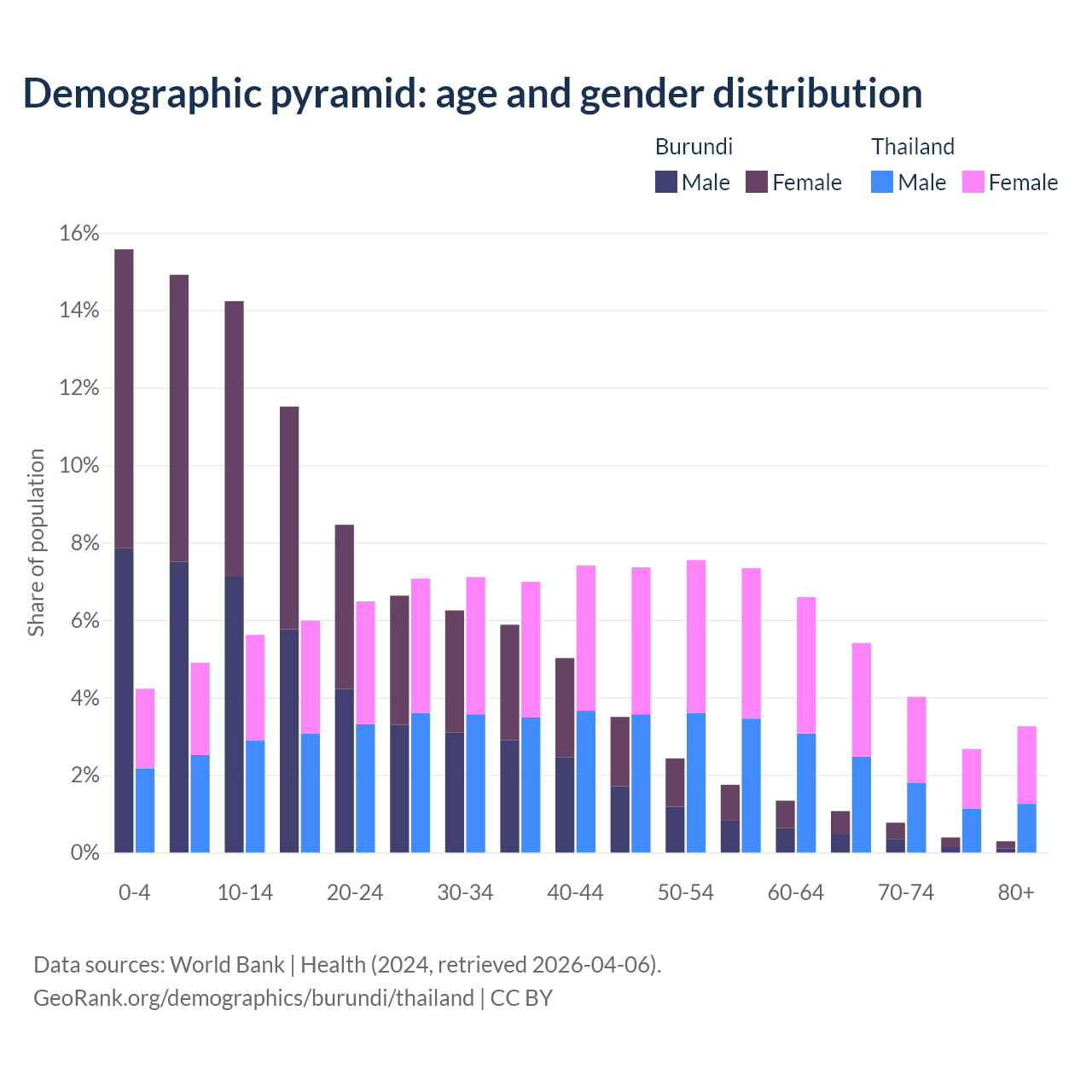 Demographics of Burundi compared to Thailand: