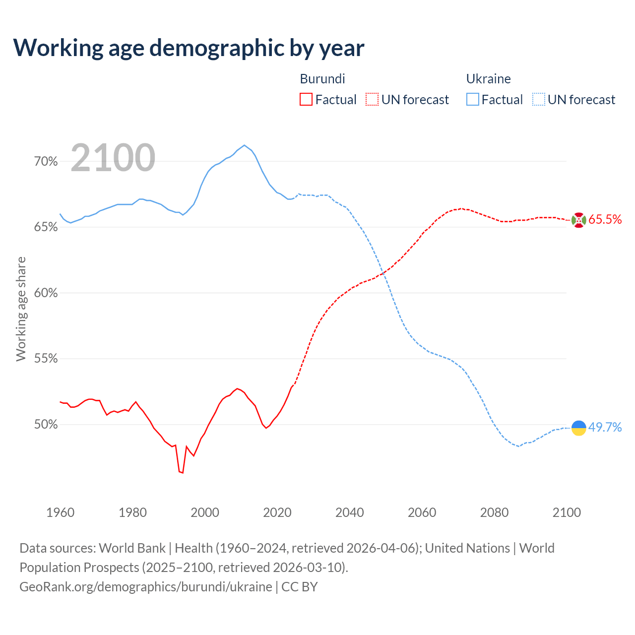 - Burundi has 7.83M working age adults (aged 15-64) vs 26.9M in Ukraine.