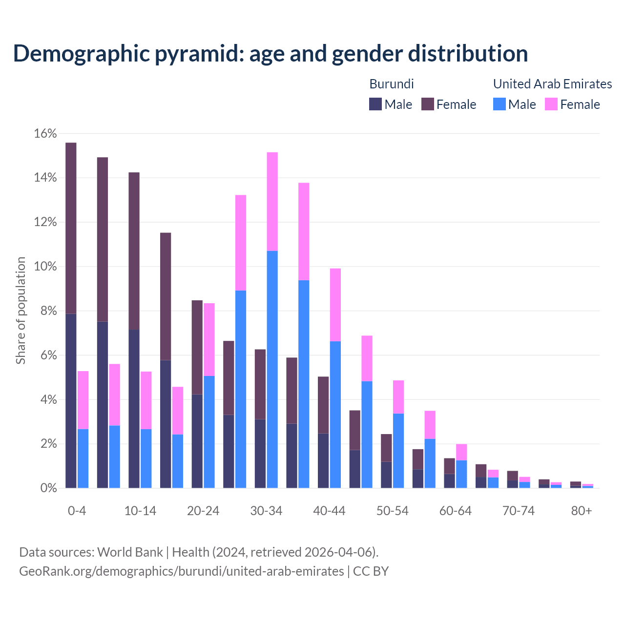 Demographics of Burundi compared to the United Arab Emirates: