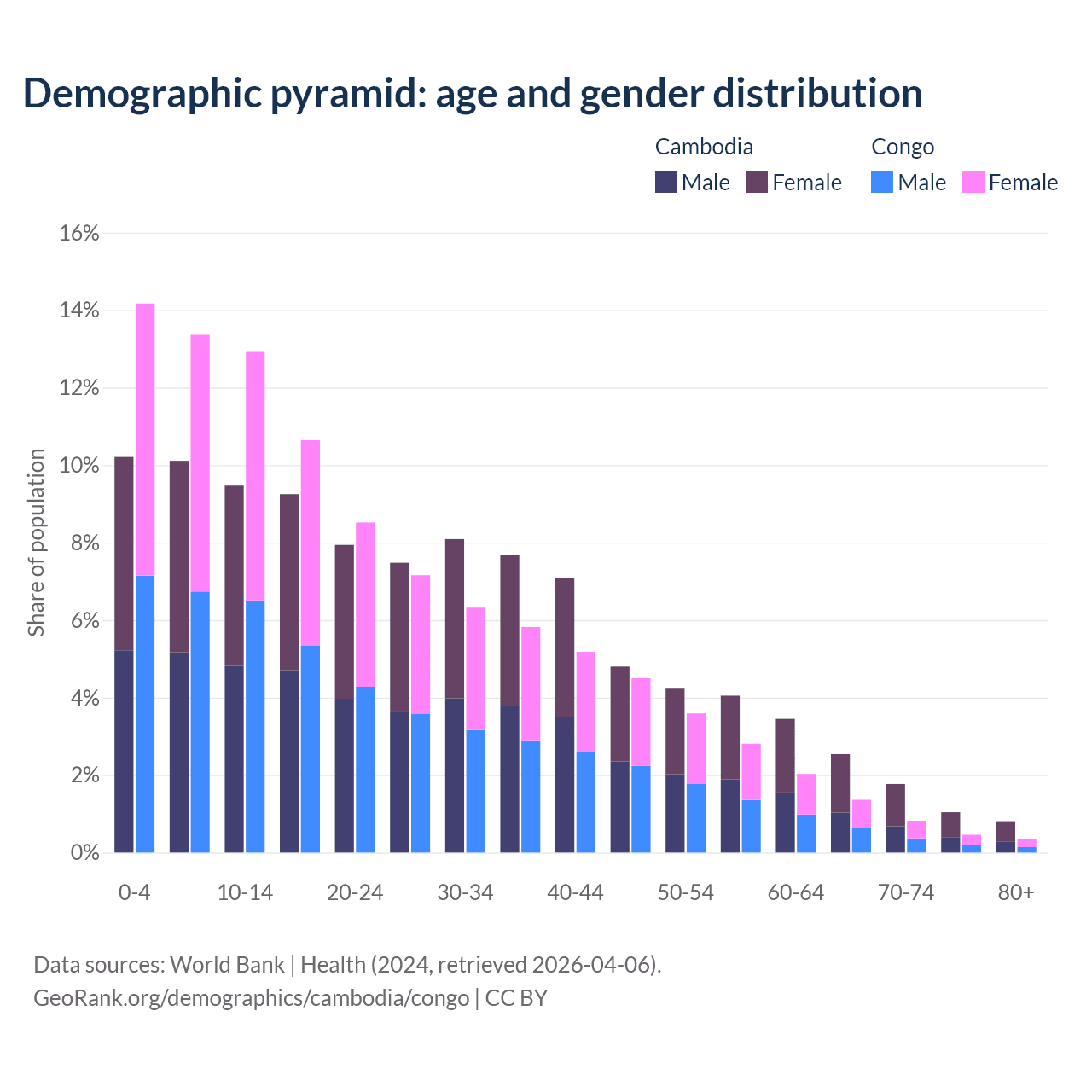 Demographics of Cambodia compared to the Congo: