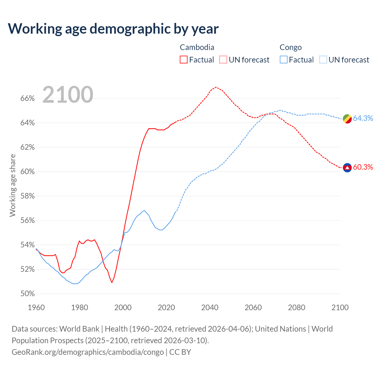 - Cambodia has 11.6M working age adults (aged 15-64) vs 3.78M in the Congo.