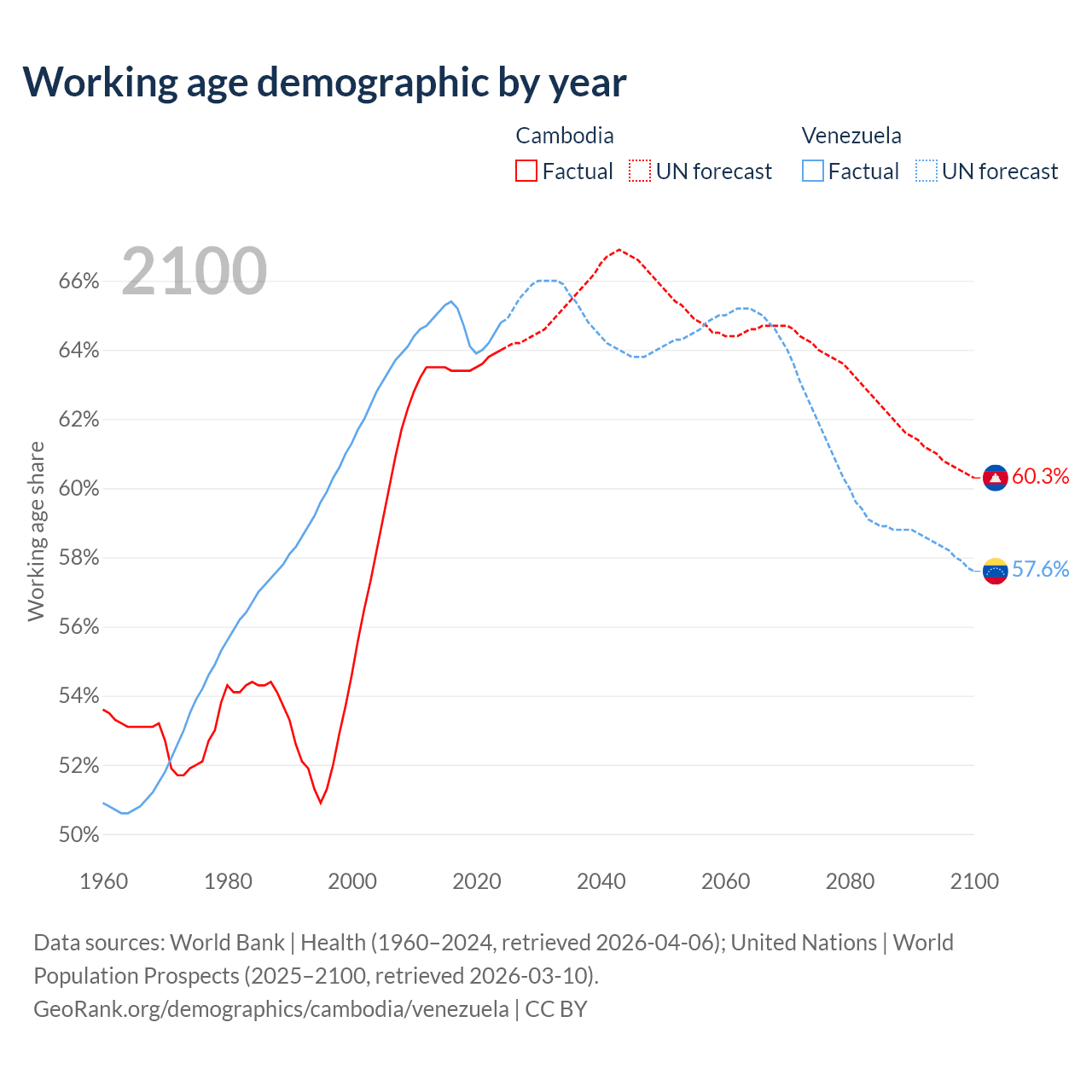 - Cambodia has 11.6M working age adults (aged 15-64) vs 18.6M in Venezuela.