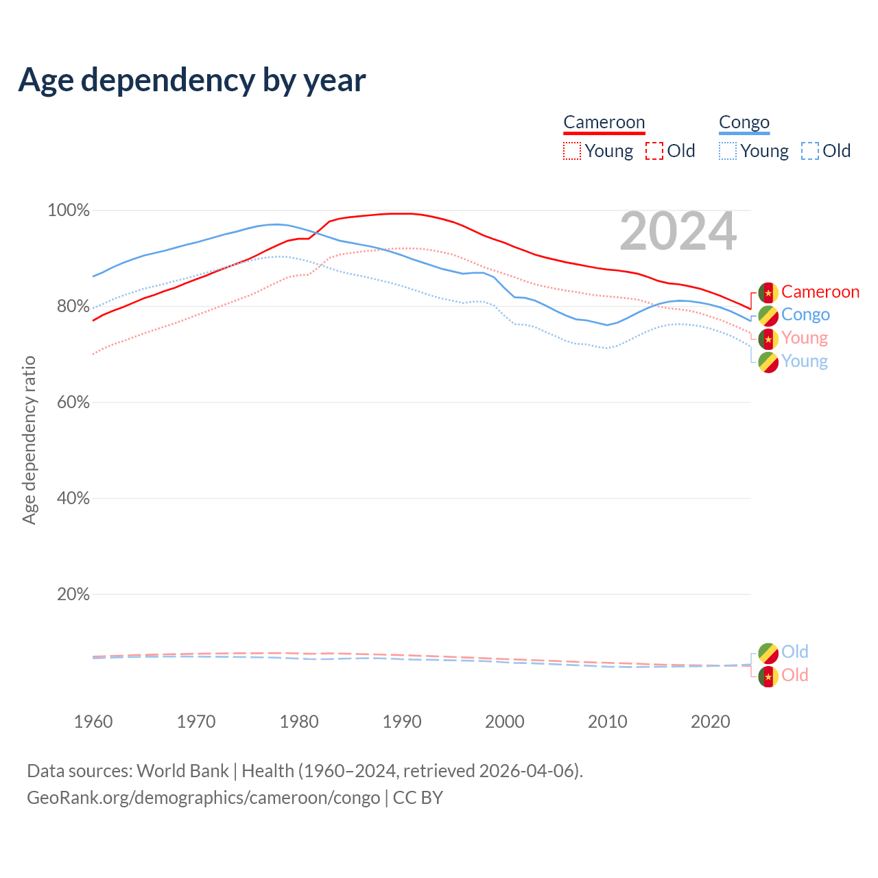 - The share of old-age demographic (65+) in Cameroon is 2.79% vs 2.99% in the Congo.