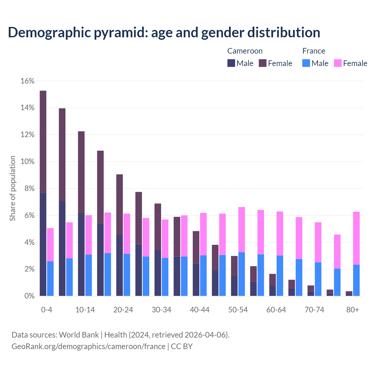 Demographics of Cameroon compared to France: