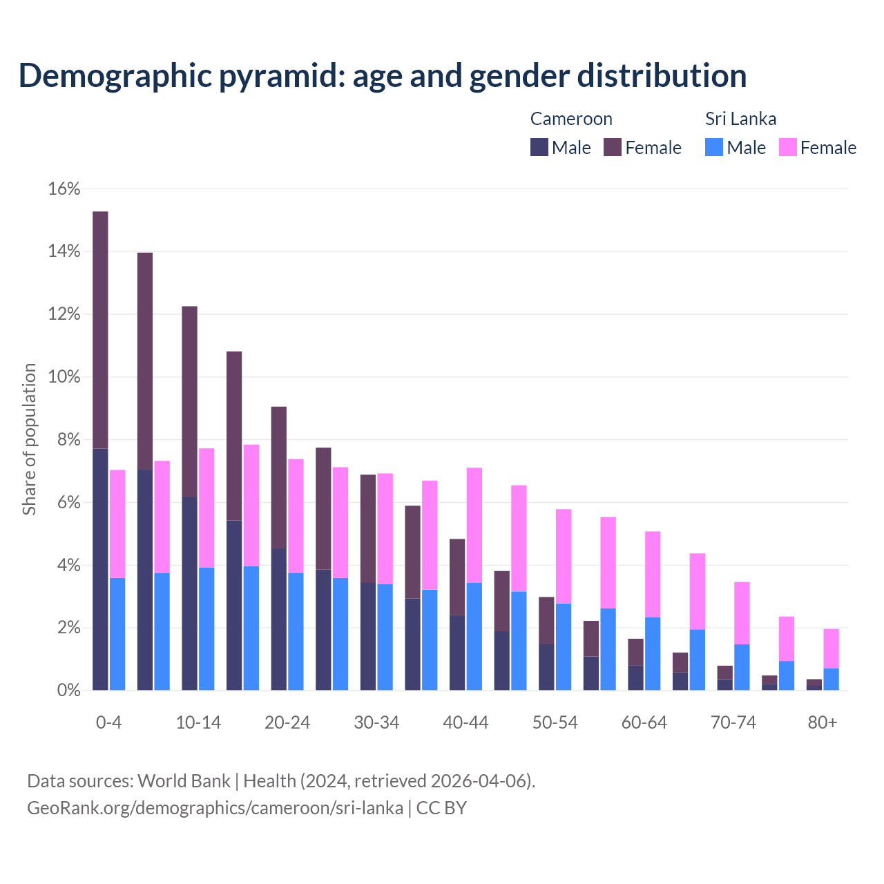 Demographics of Cameroon compared to Sri Lanka: