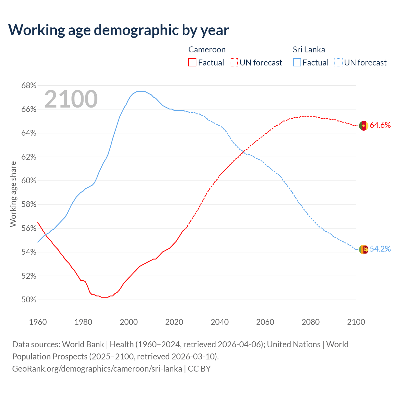 - Cameroon has 17.2M working age adults (aged 15-64) vs 14.6M in Sri Lanka.