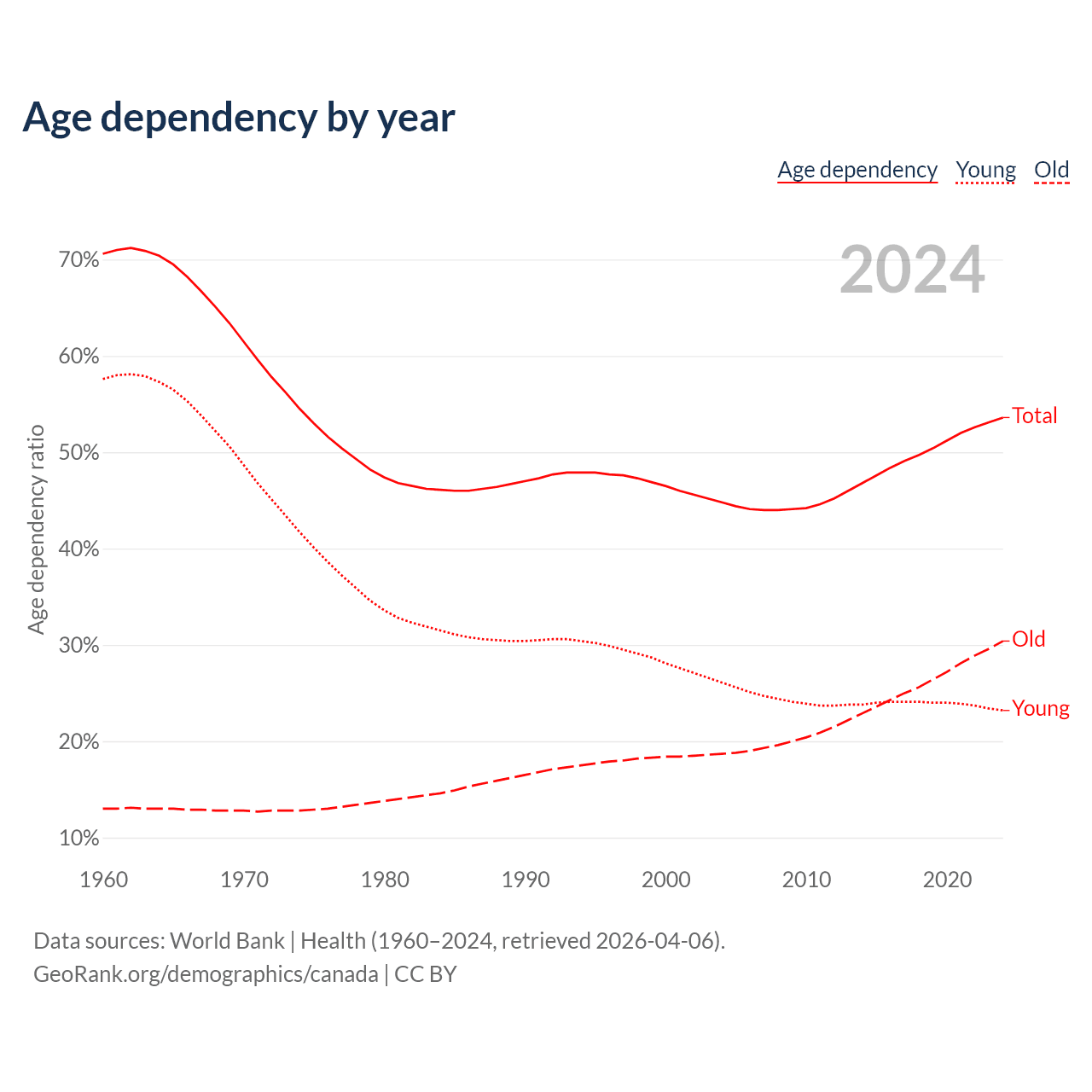 - World Bank | Health (1960–2024, retrieved 2026-04-06)