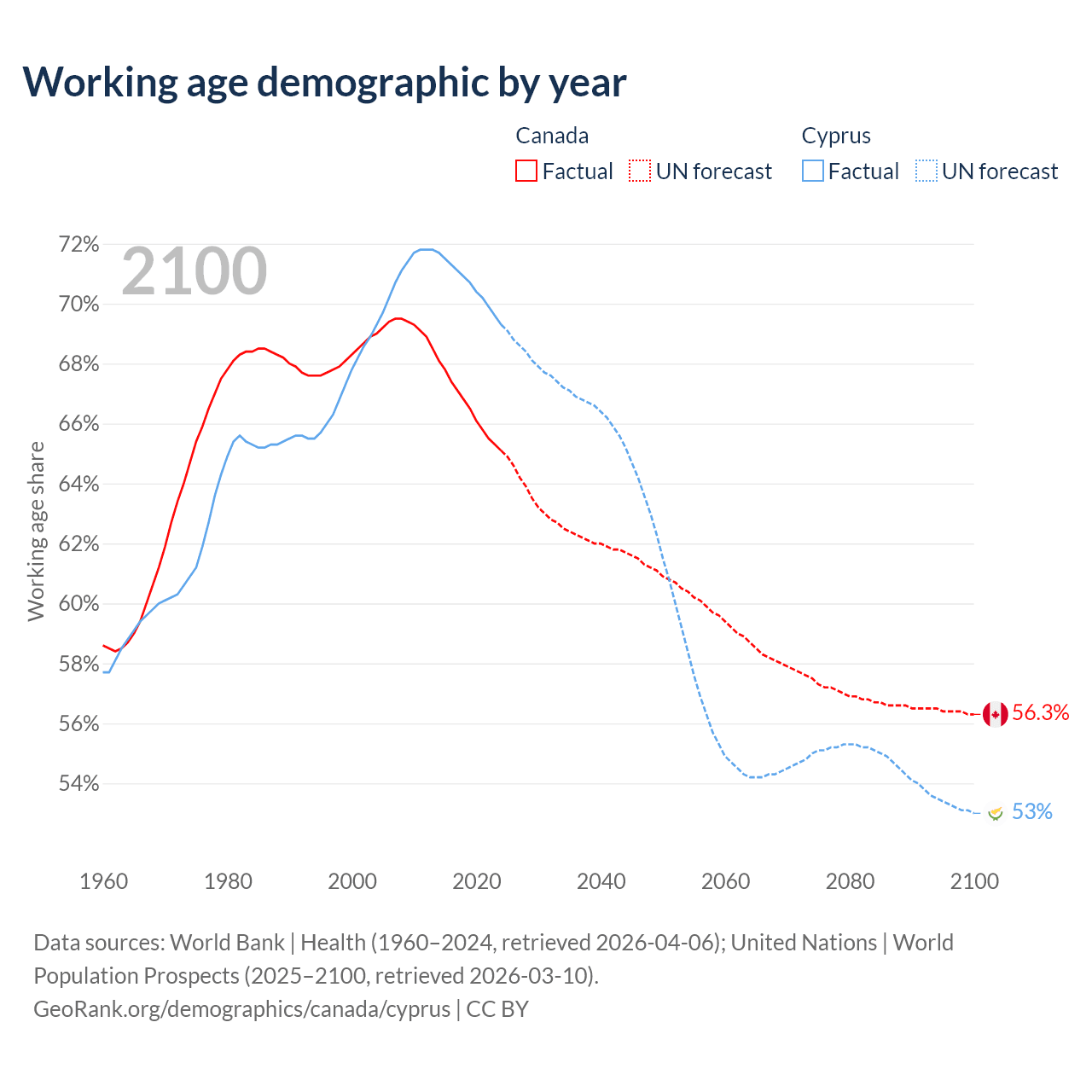 - Canada has 27.5M working age adults (aged 15-64) vs 961K in Cyprus.
