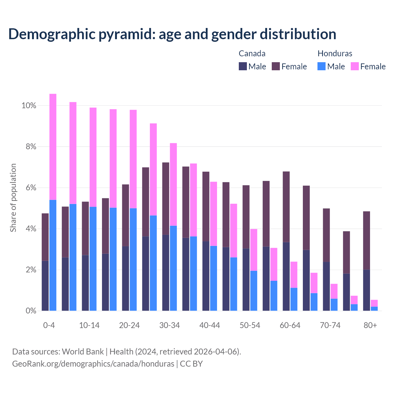 Demographics of Canada compared to Honduras: