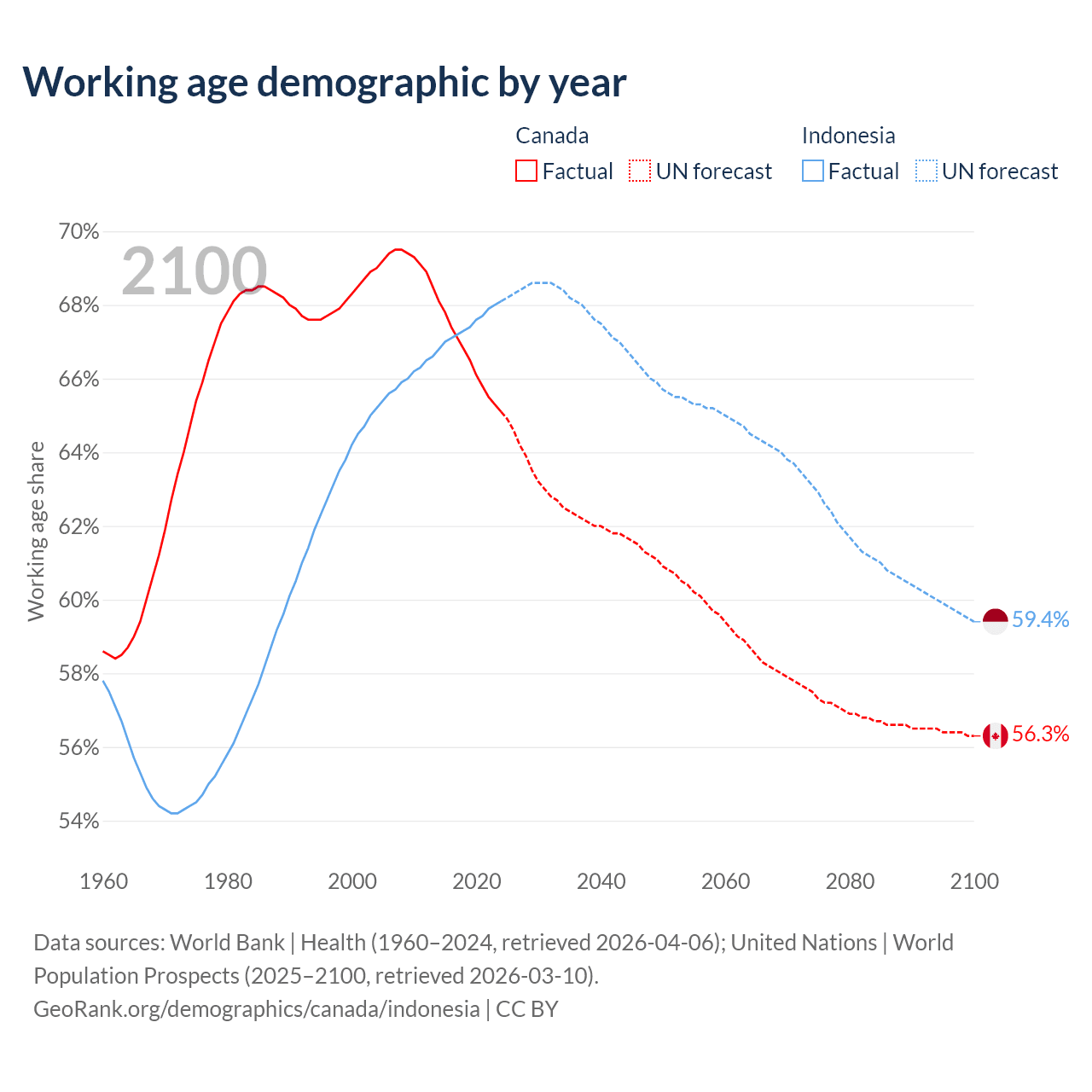 - Canada has 27.5M working age adults (aged 15-64) vs 197M in Indonesia.