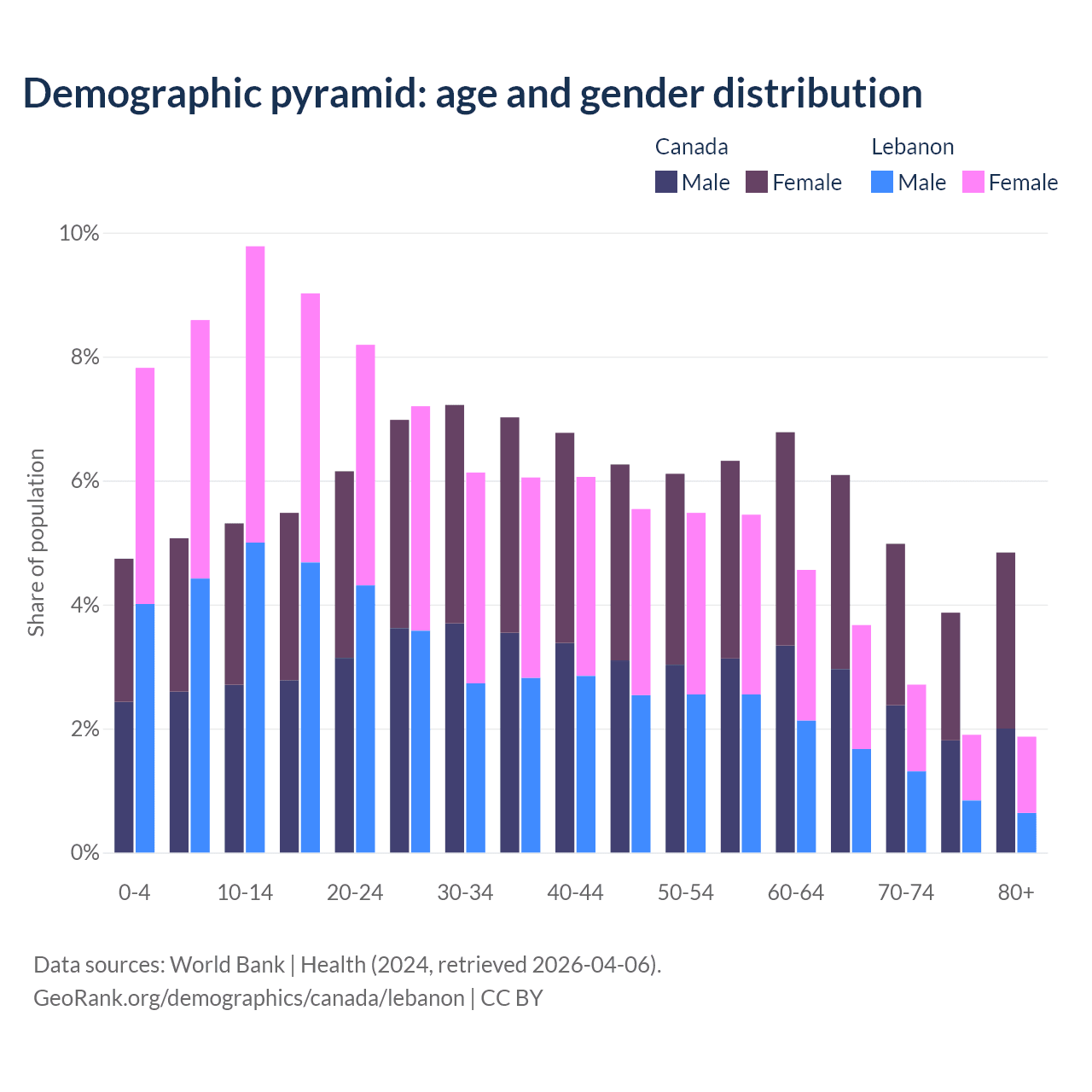 Demographics of Canada compared to Lebanon: