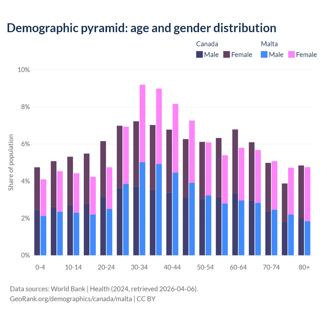 Demographics of Canada compared to Malta: