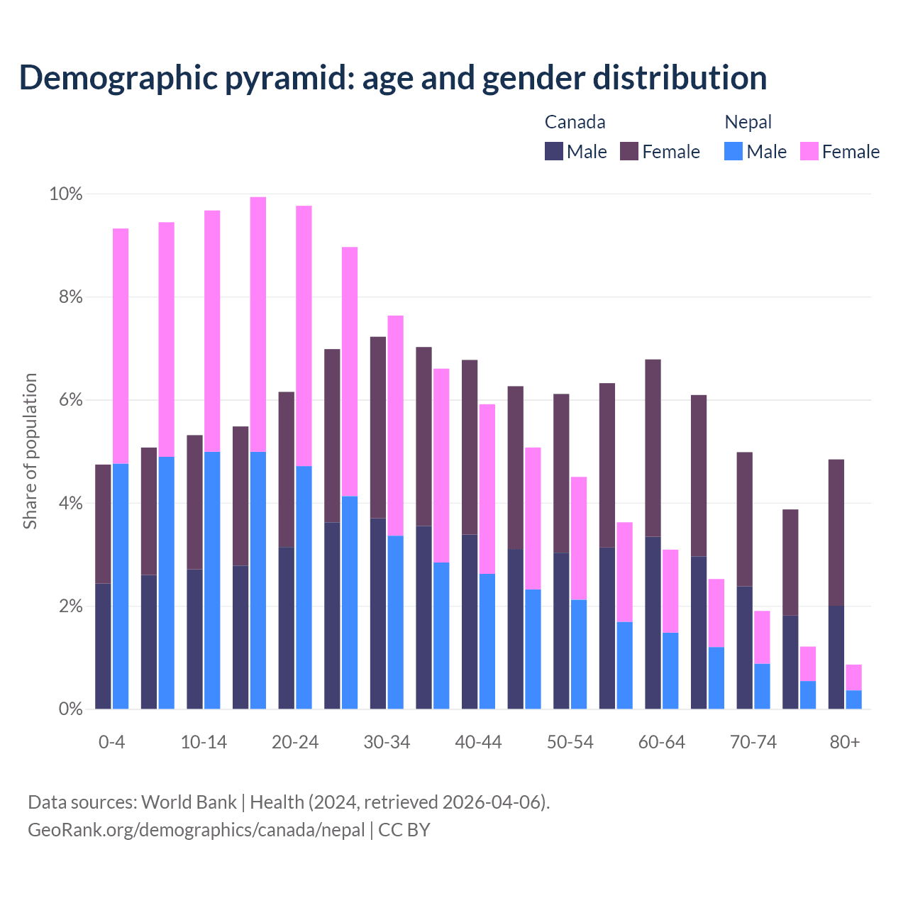 Demographics of Canada compared to Nepal: