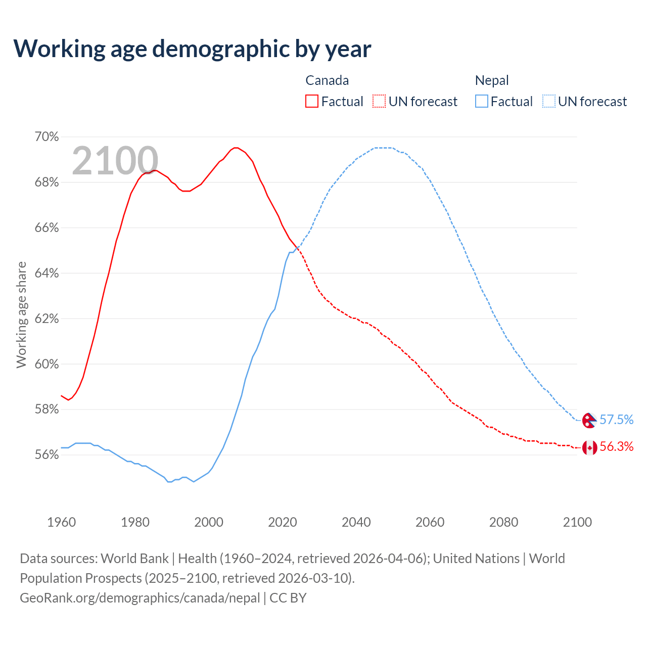 - Canada has 27.5M working age adults (aged 15-64) vs 19.3M in Nepal.