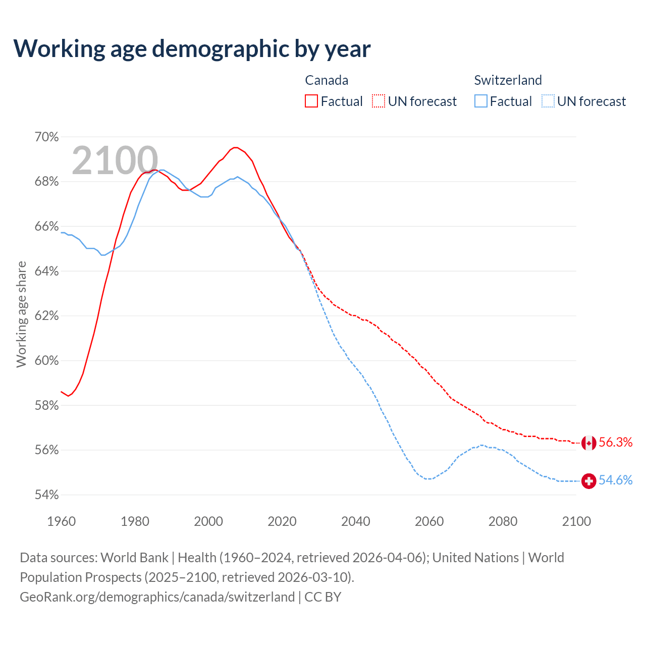 - Canada has 27.5M working age adults (aged 15-64) vs 5.92M in Switzerland.