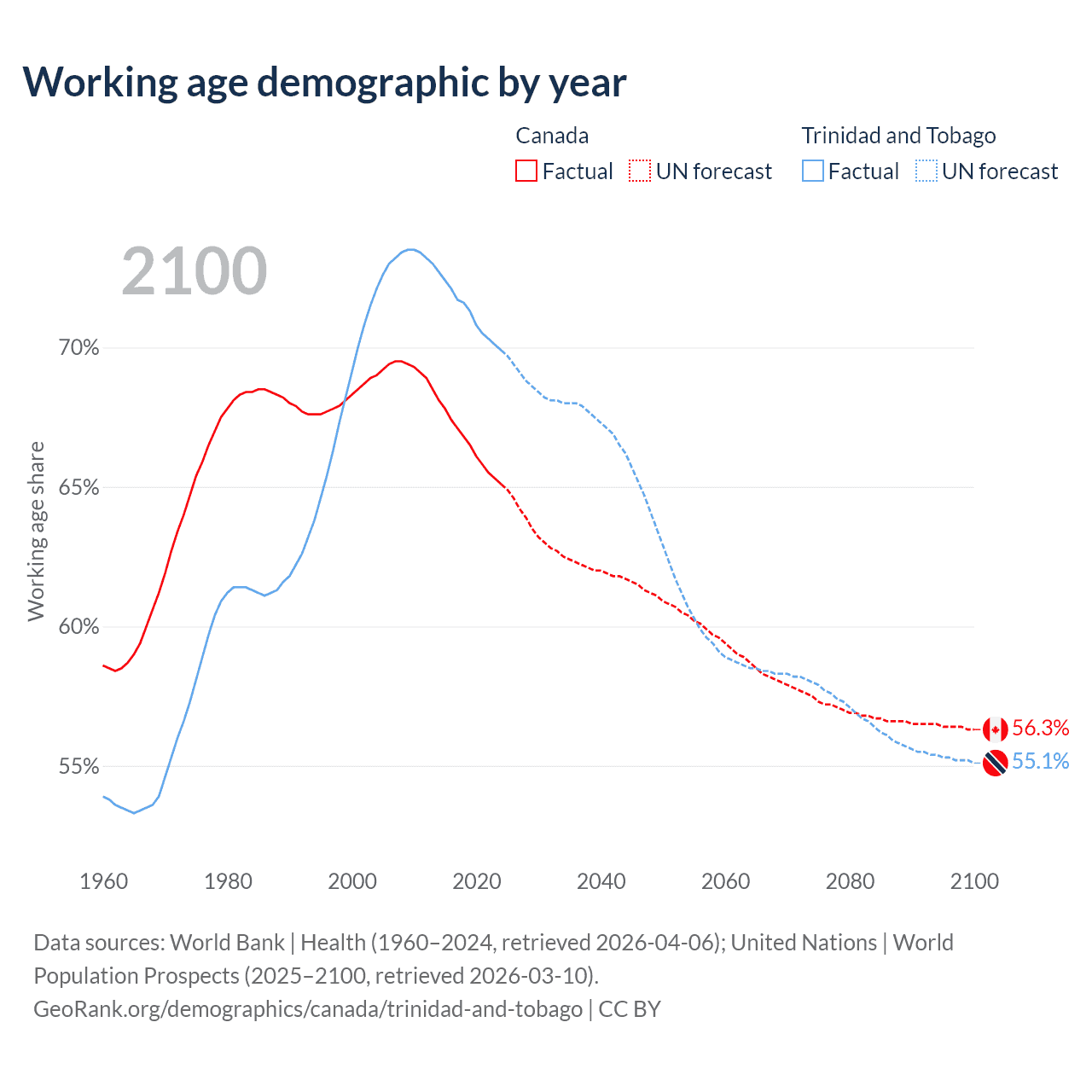 - Canada has 27.5M working age adults (aged 15-64) vs 960K in Trinidad and Tobago.