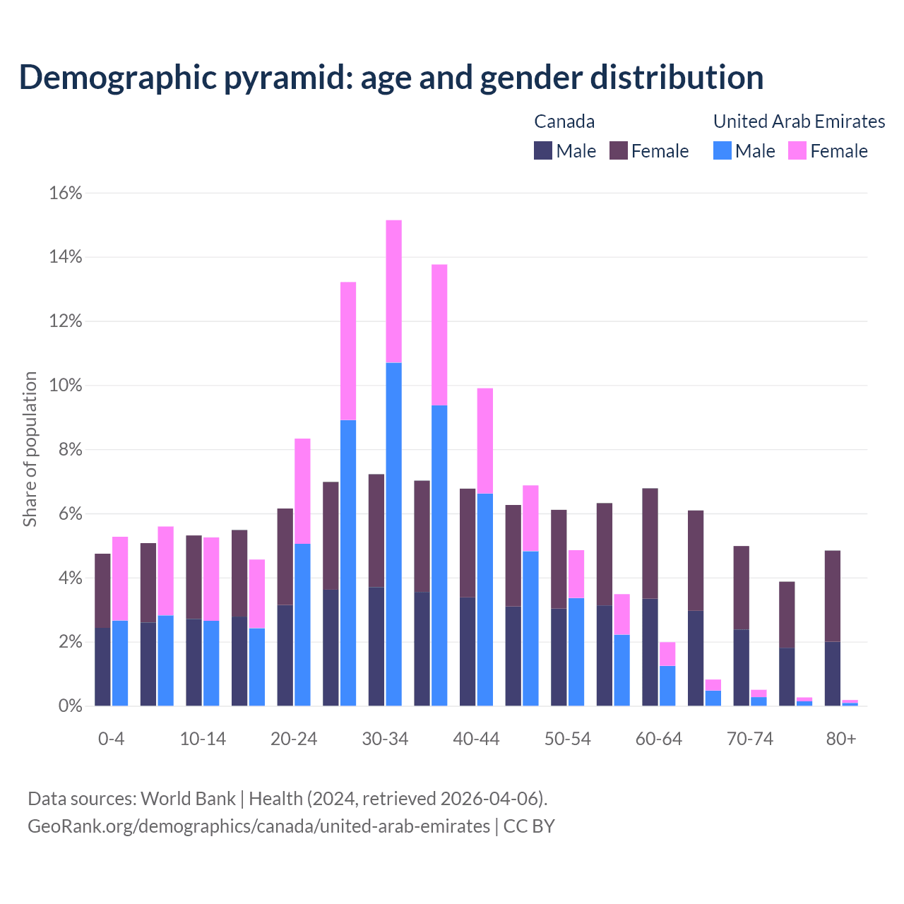 Demographics of Canada compared to the United Arab Emirates: