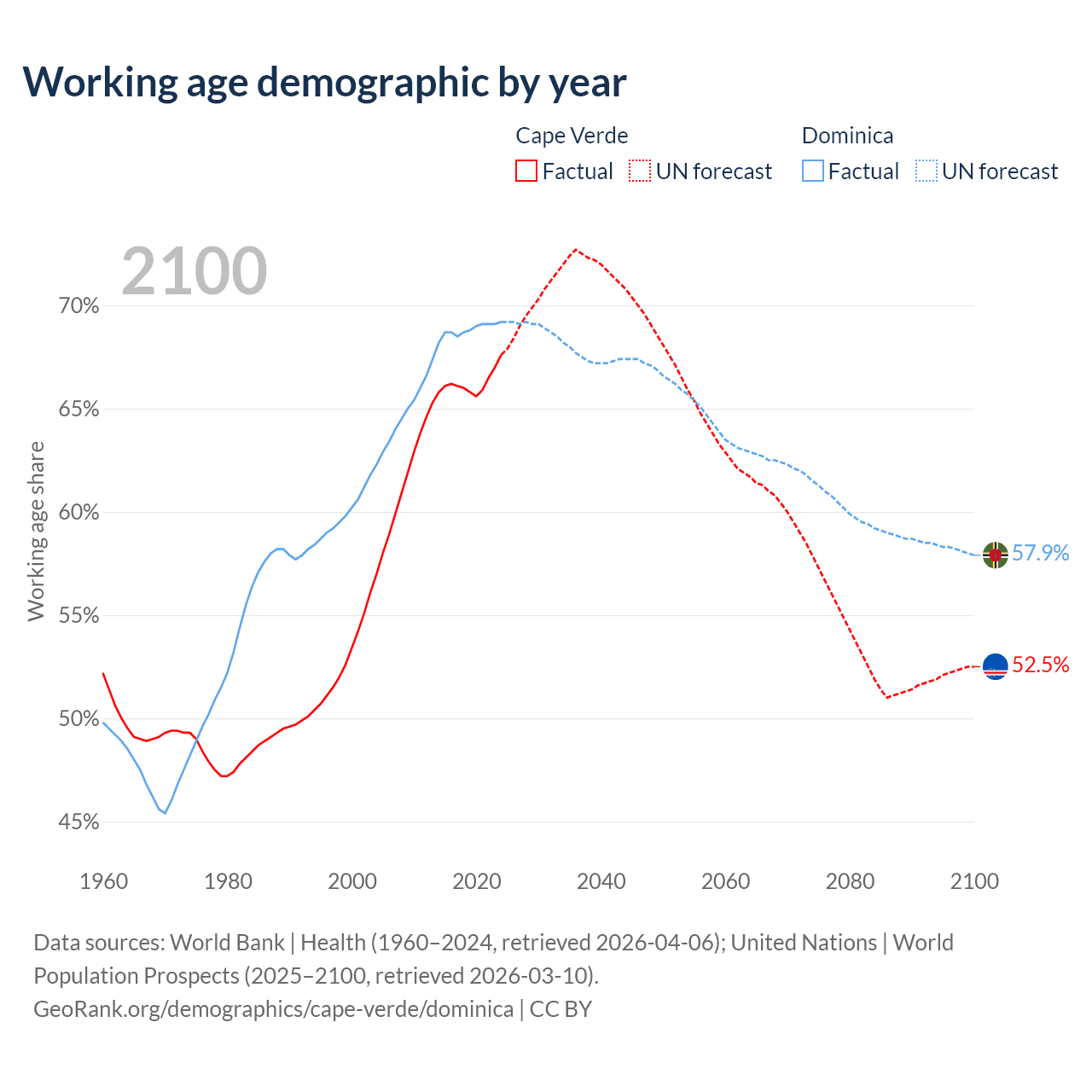 - Cape Verde has 359K working age adults (aged 15-64) vs 45.3K in Dominica.