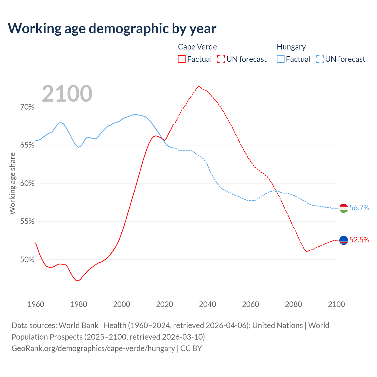 - Cape Verde has 359K working age adults (aged 15-64) vs 6.12M in Hungary.