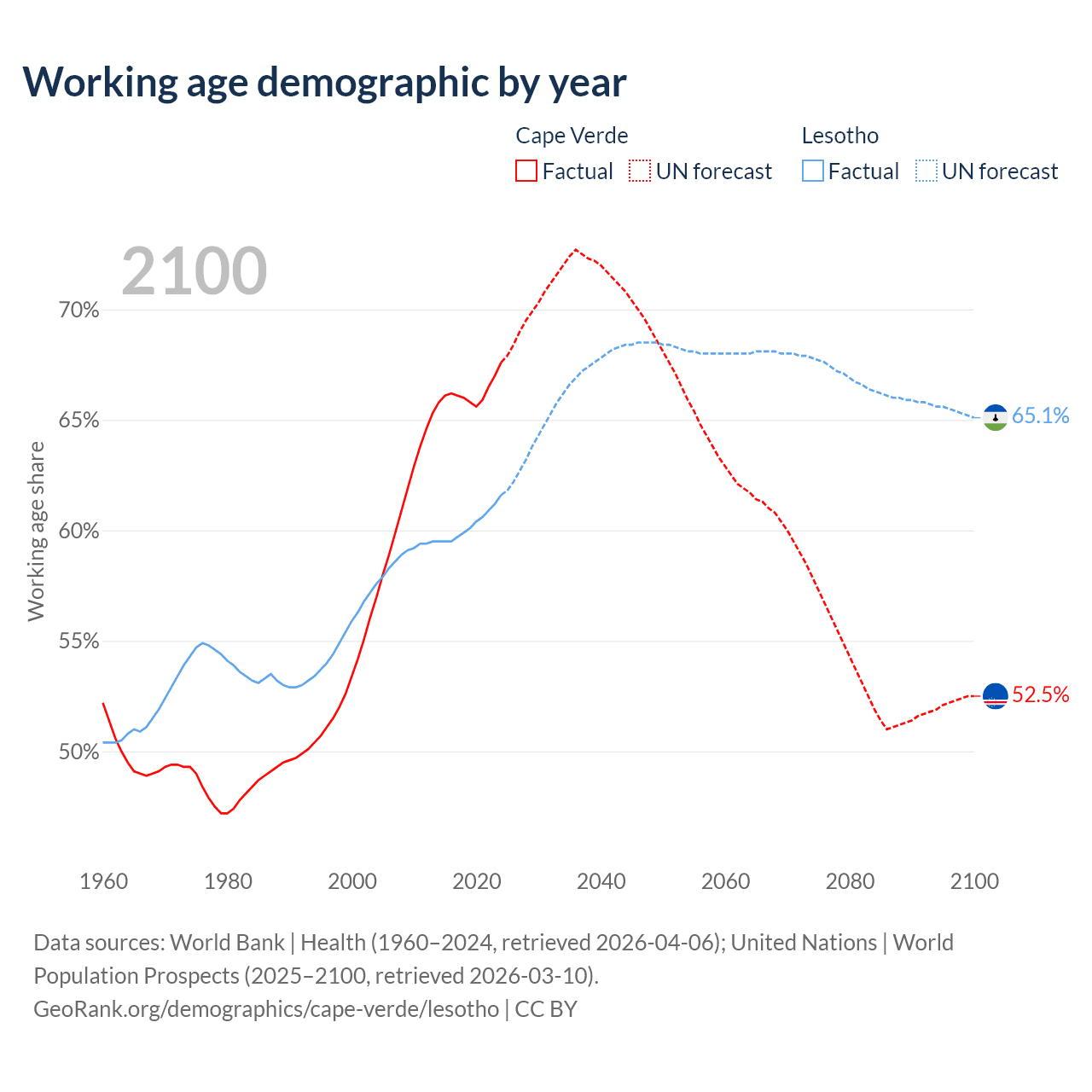 - Cape Verde has 359K working age adults (aged 15-64) vs 1.48M in Lesotho.