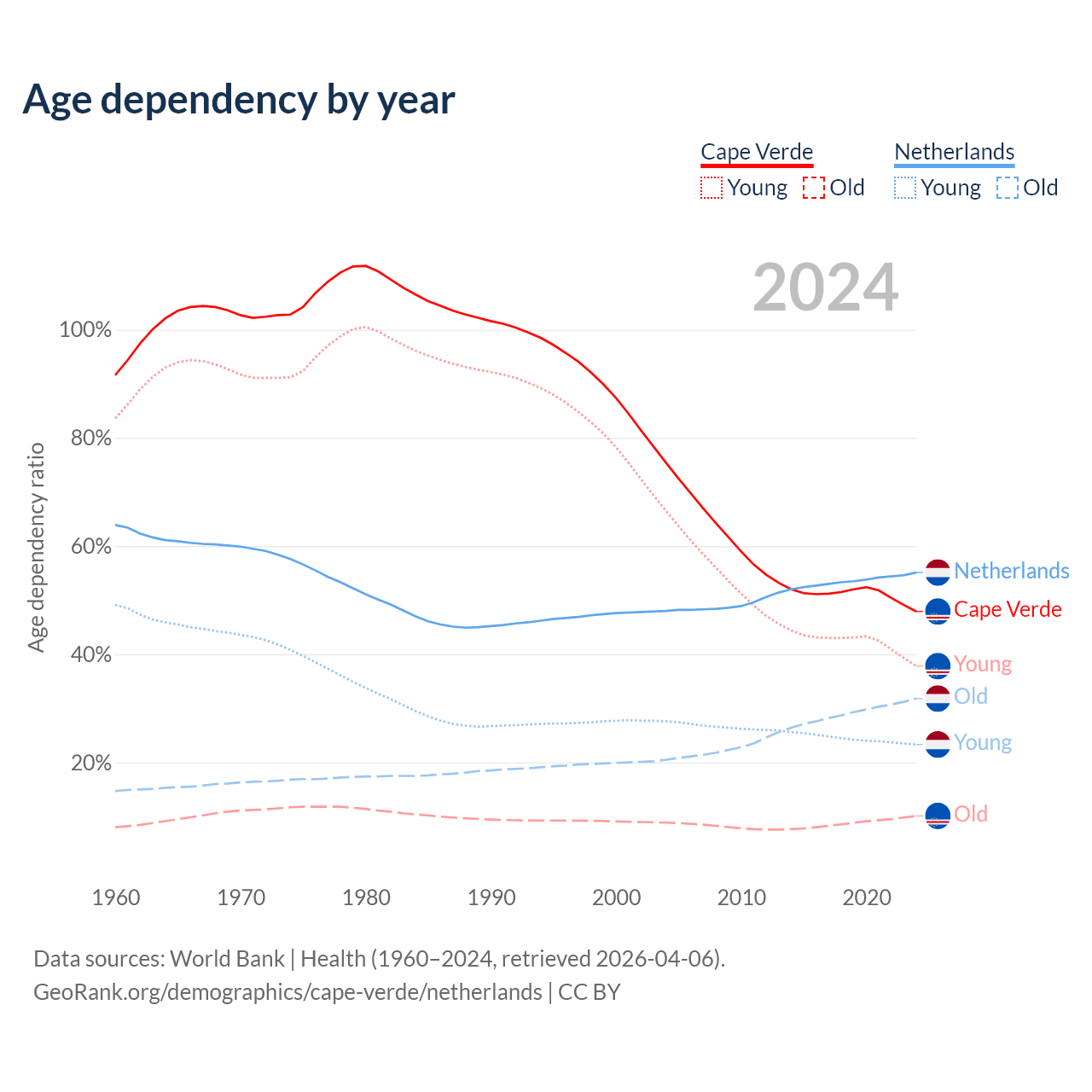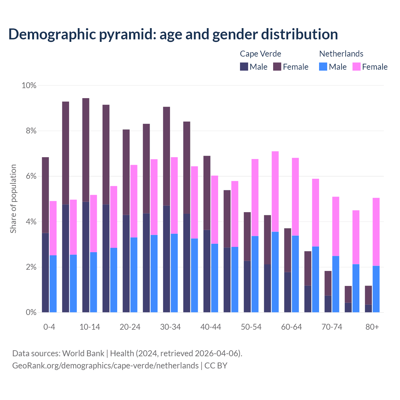 Demographics of Cape Verde compared to the Netherlands: