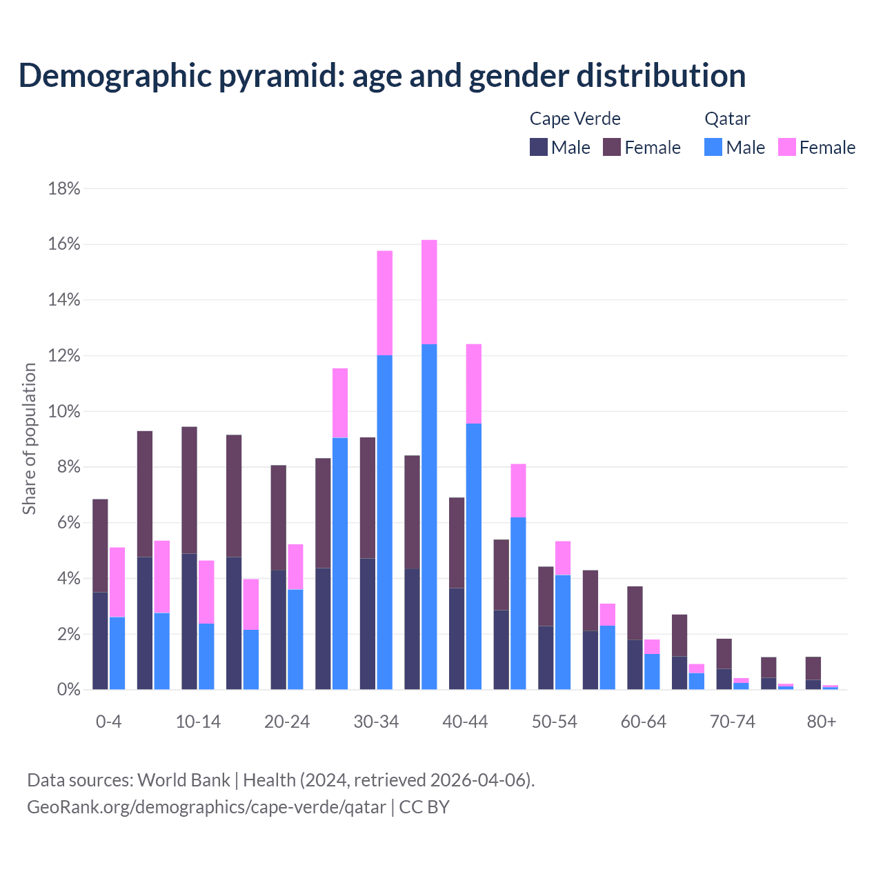 Demographics of Cape Verde compared to Qatar: