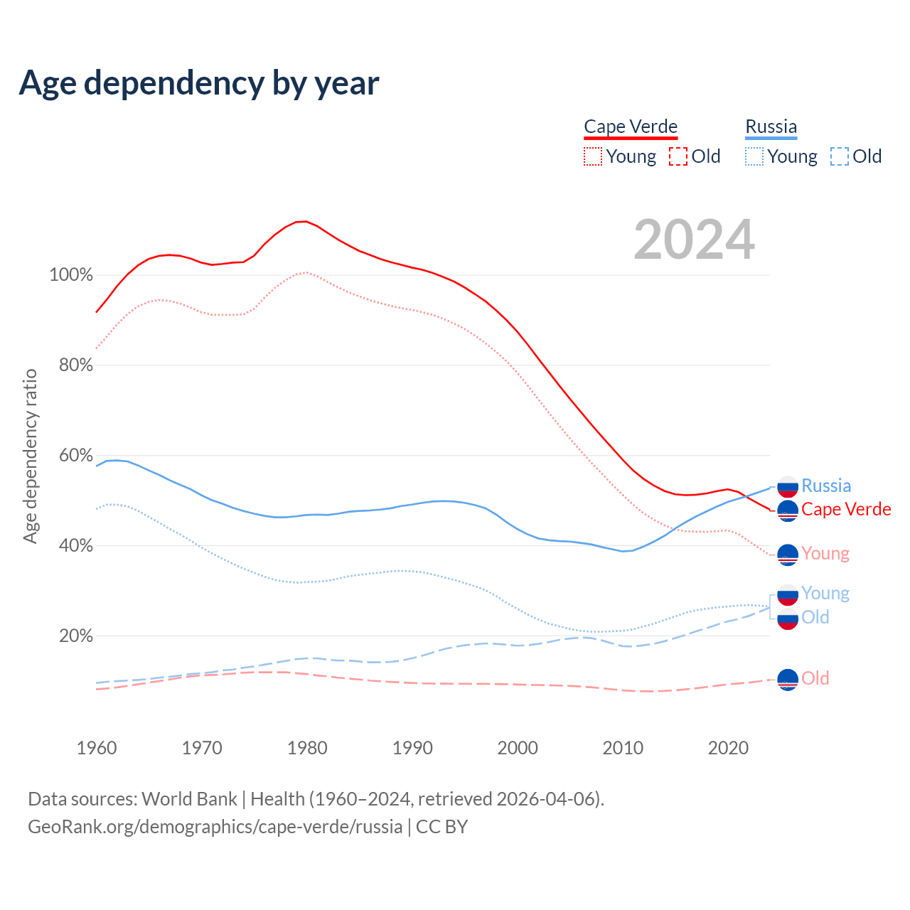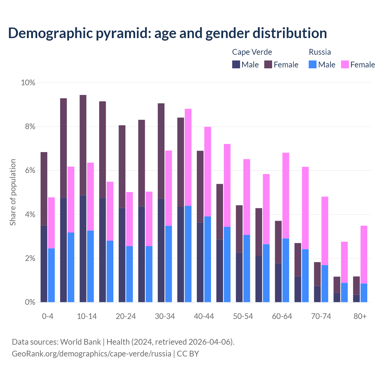 Demographics of Cape Verde compared to Russia: