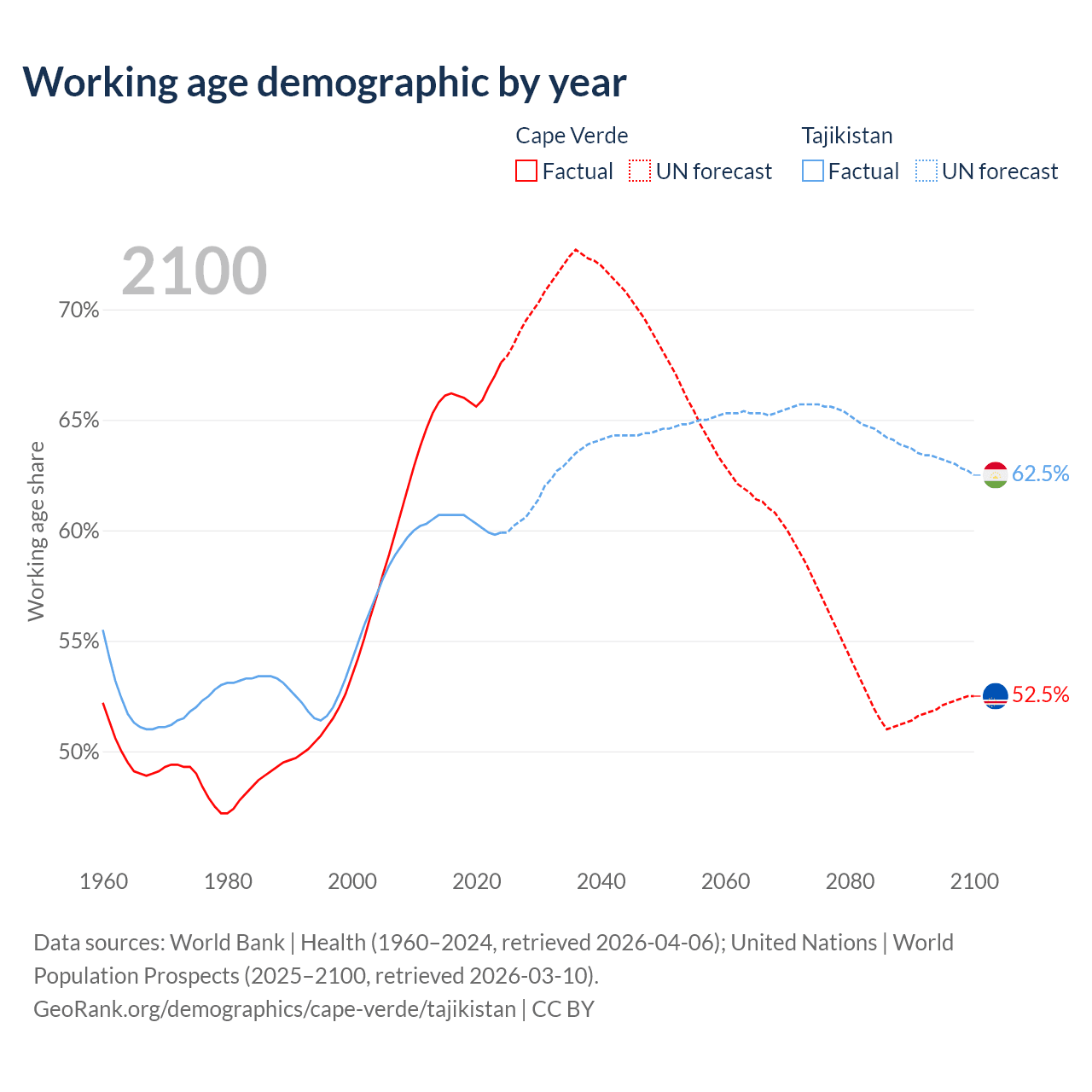 - Cape Verde has 359K working age adults (aged 15-64) vs 6.61M in Tajikistan.