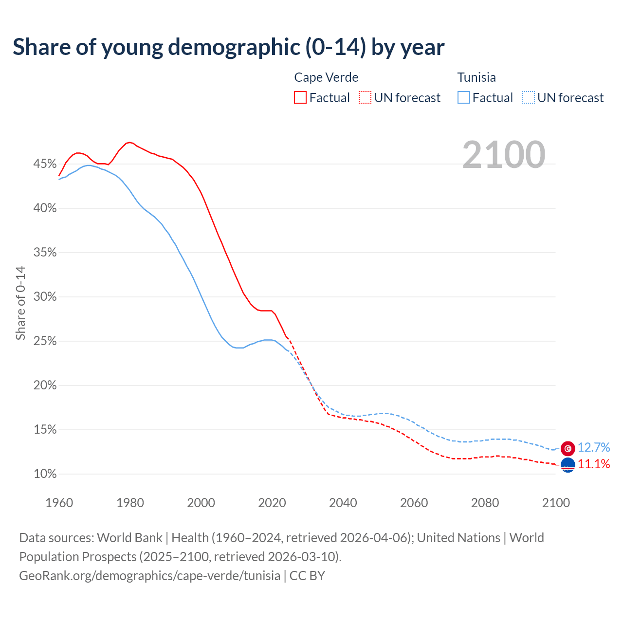 - The share of young demographic (0-15 years old) in Cape Verde is 25.5% vs 24% in Tunisia.