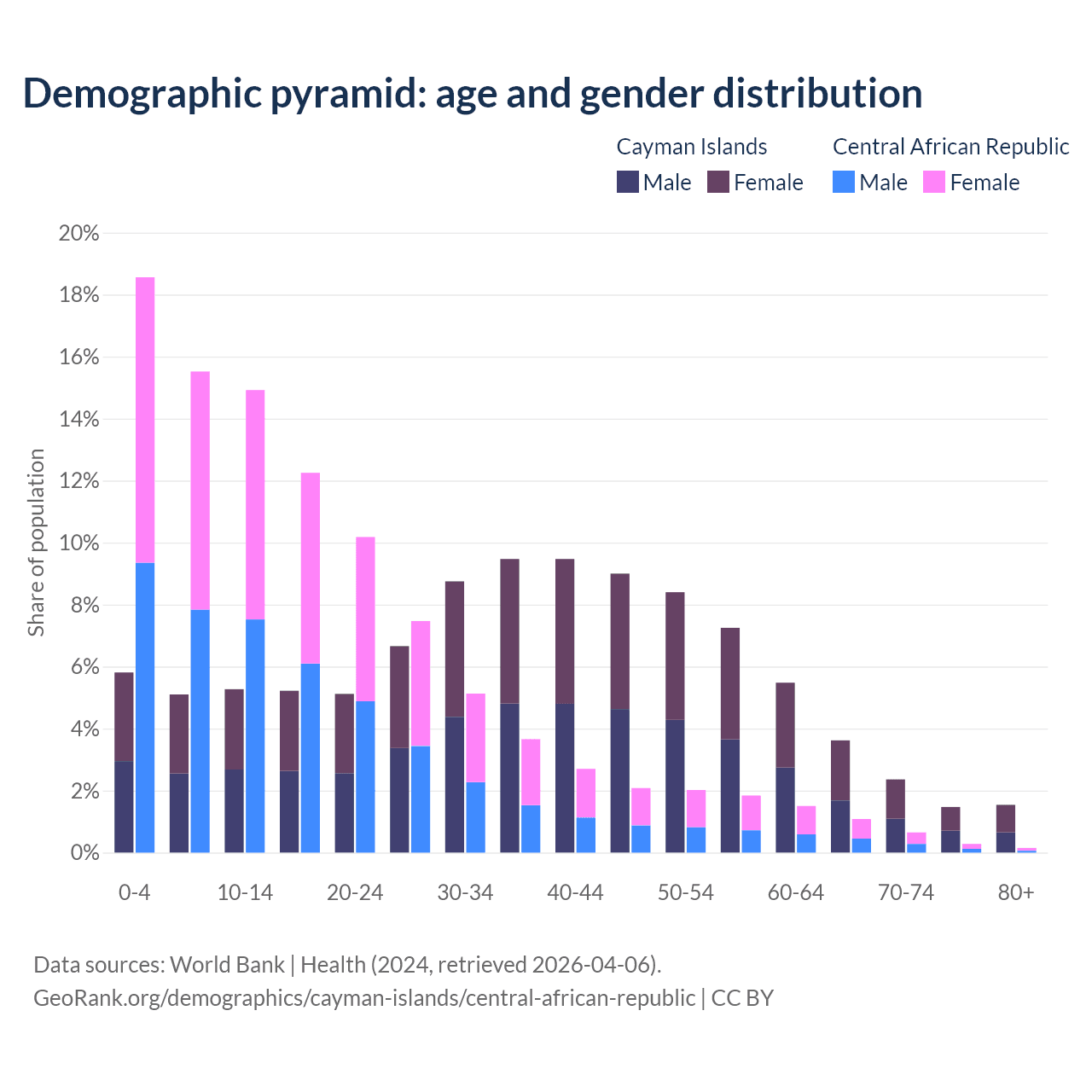Demographics of the Cayman Islands compared to the Central African Republic: