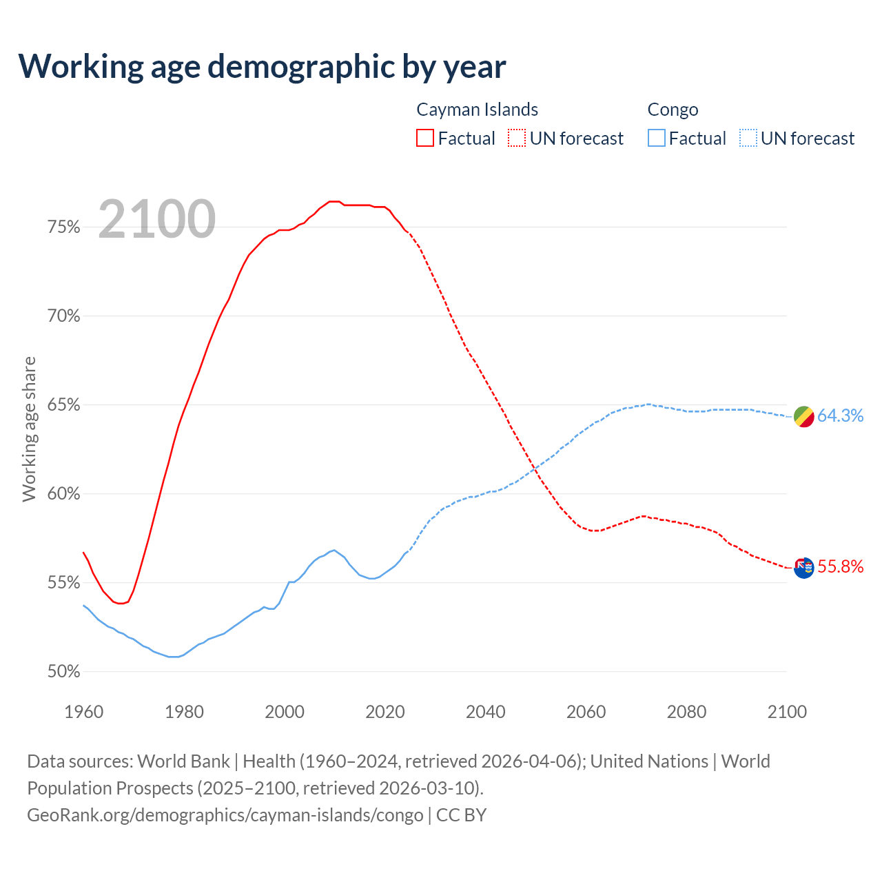 - The Cayman Islands has 58.1K working age adults (aged 15-64) vs 3.78M in the Congo.
