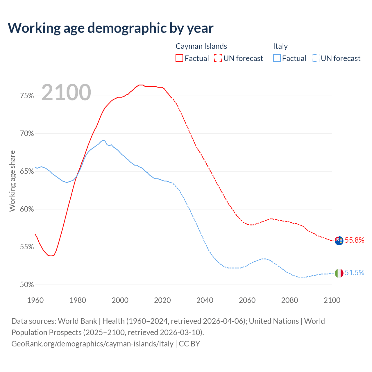 - The Cayman Islands has 58.1K working age adults (aged 15-64) vs 37.2M in Italy.