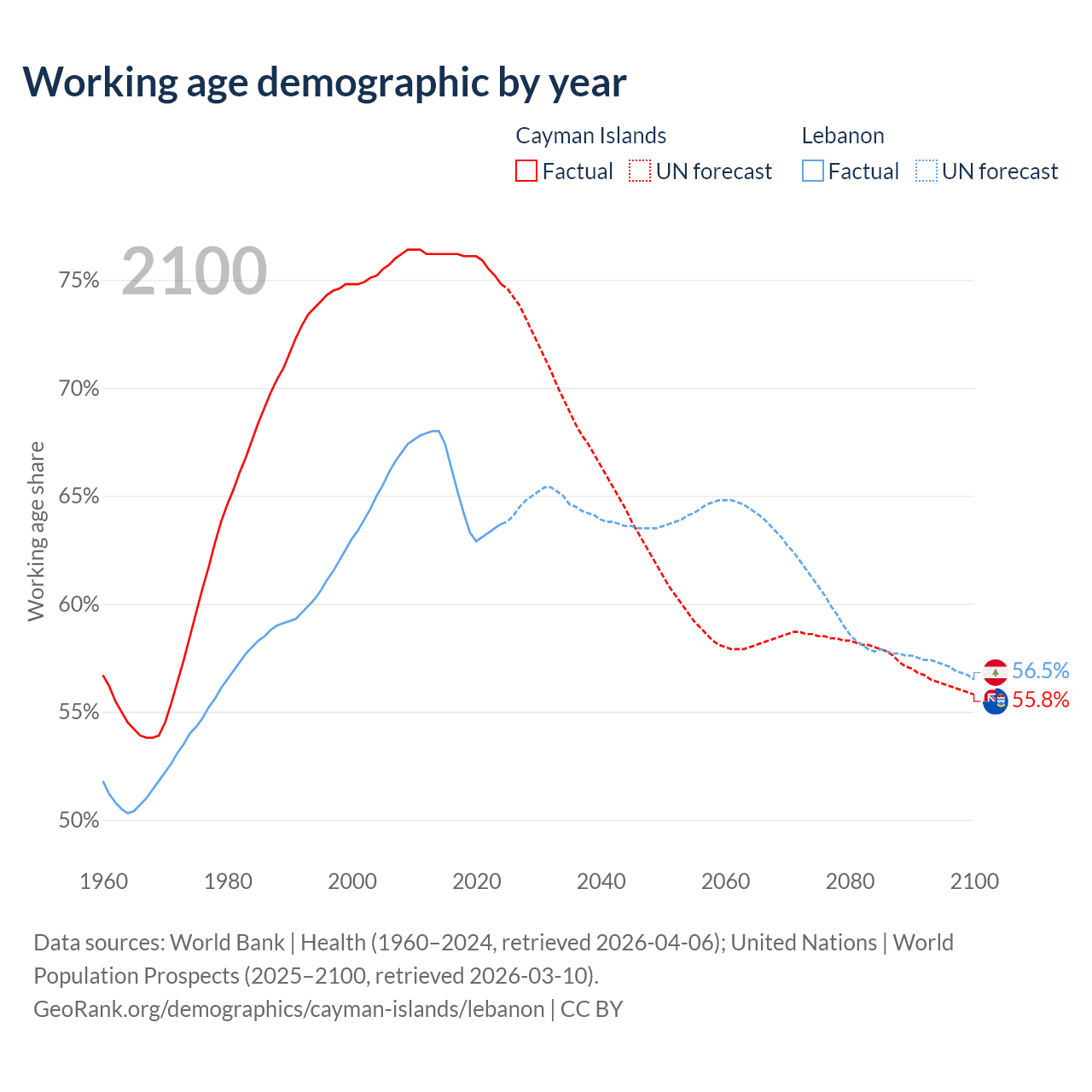 - The Cayman Islands has 58.1K working age adults (aged 15-64) vs 3.76M in Lebanon.