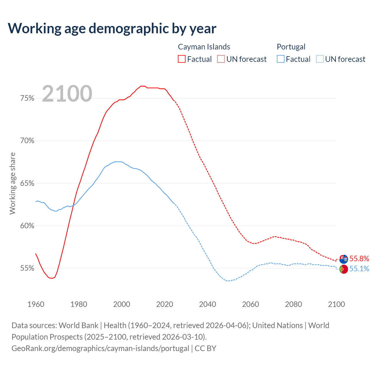 - The Cayman Islands has 58.1K working age adults (aged 15-64) vs 6.68M in Portugal.