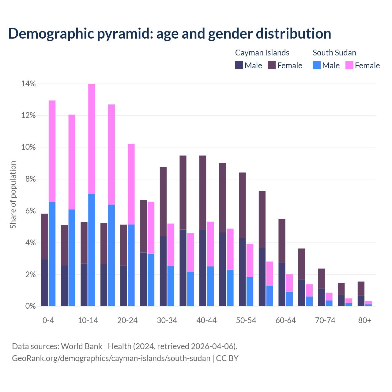 Demographics of the Cayman Islands compared to South Sudan: