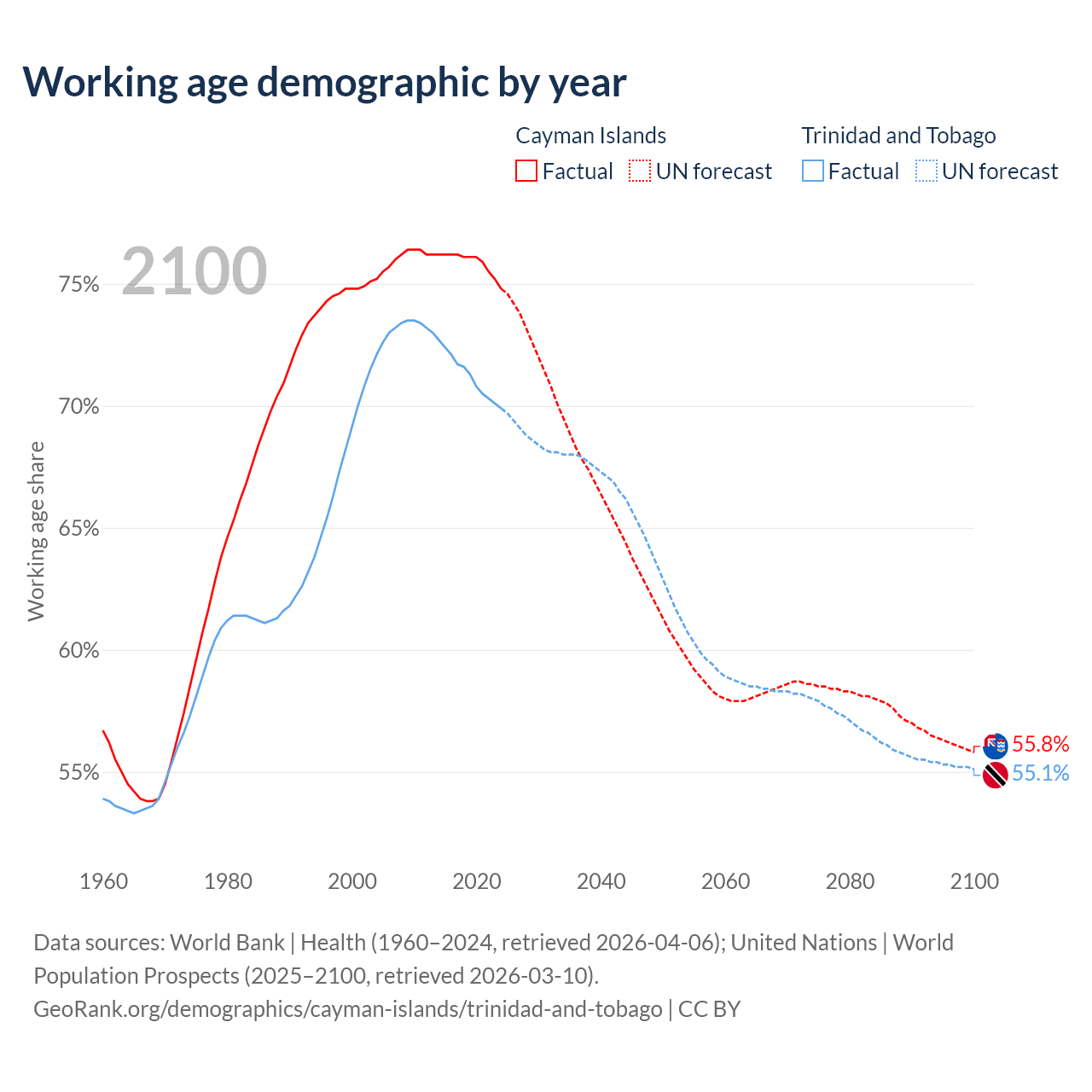 - The Cayman Islands has 58.1K working age adults (aged 15-64) vs 960K in Trinidad and Tobago.