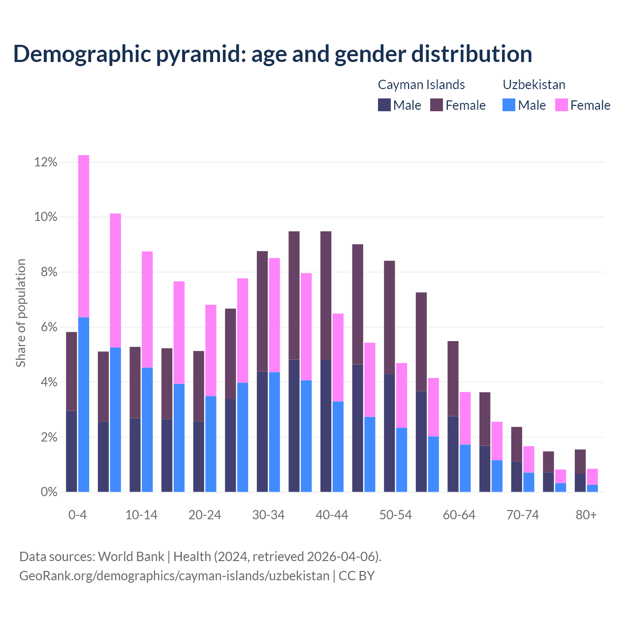 Demographics of the Cayman Islands compared to Uzbekistan: