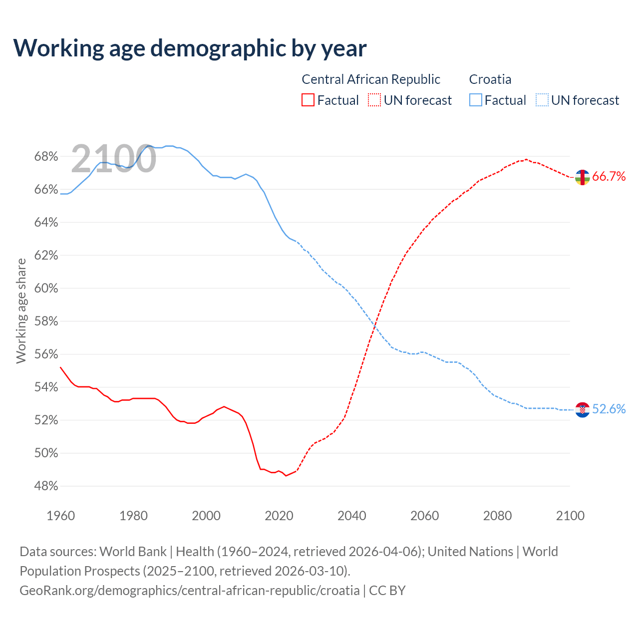 - The Central African Republic has 2.81M working age adults (aged 15-64) vs 2.4M in Croatia.