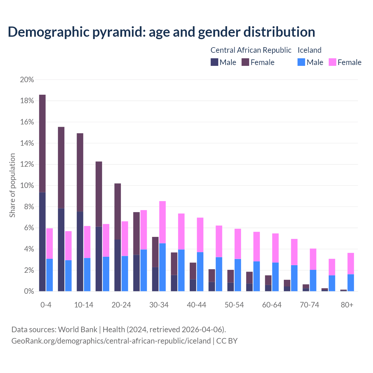 Demographics of the Central African Republic compared to Iceland:
