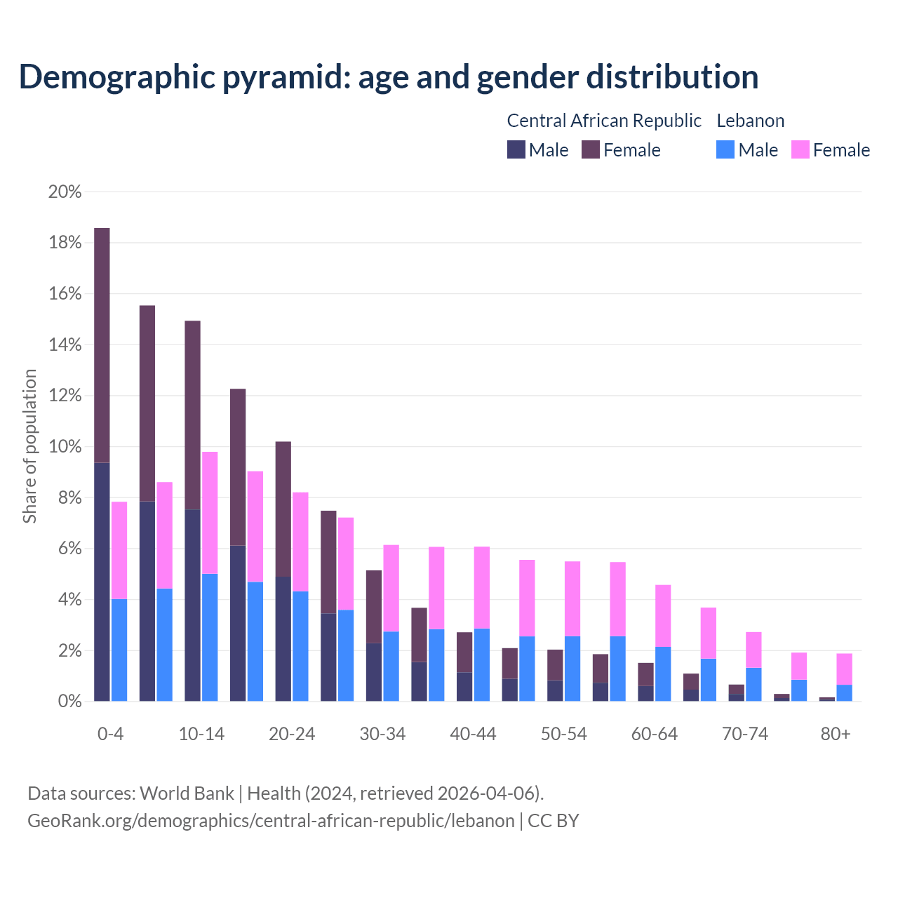Demographics of the Central African Republic compared to Lebanon: