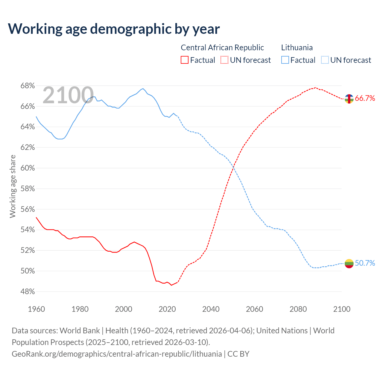 - The Central African Republic has 2.81M working age adults (aged 15-64) vs 1.84M in Lithuania.