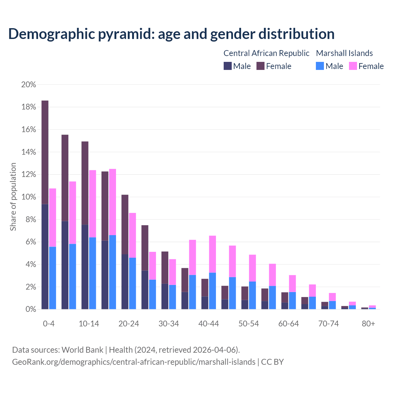 Demographics of the Central African Republic compared to the Marshall Islands: