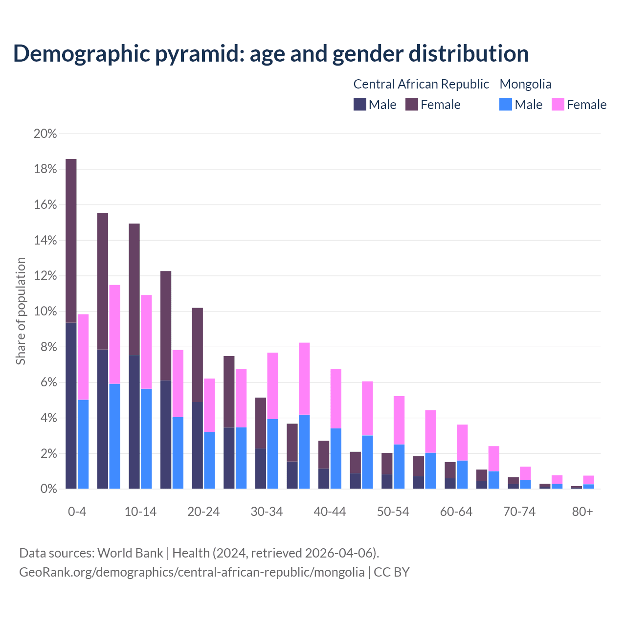 Demographics of the Central African Republic compared to Mongolia: