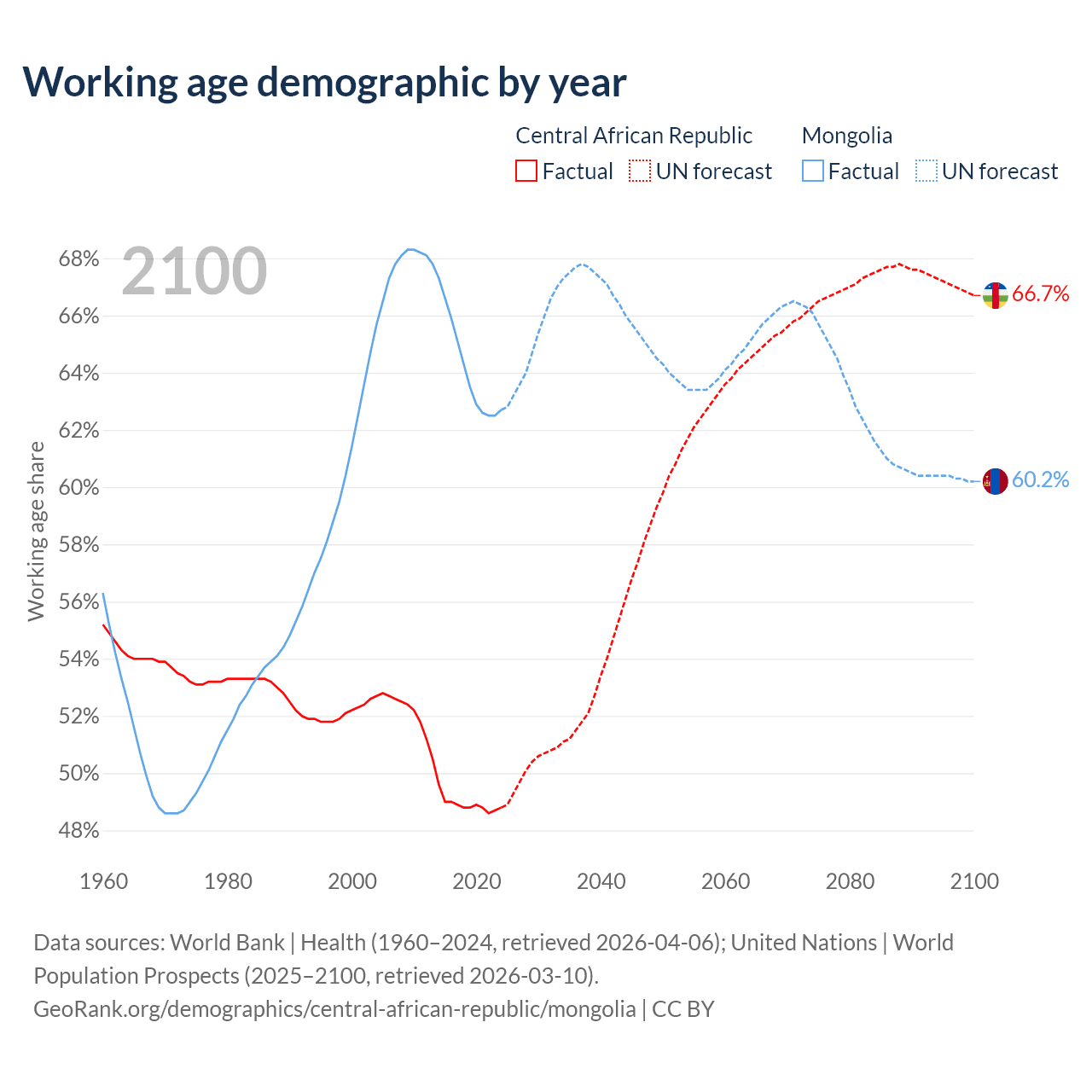 - The Central African Republic has 2.81M working age adults (aged 15-64) vs 2.27M in Mongolia.