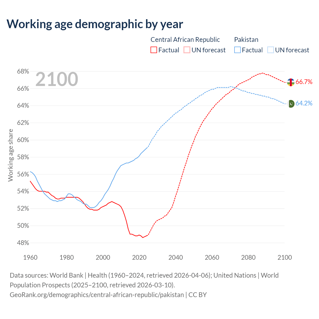 - The Central African Republic has 2.81M working age adults (aged 15-64) vs 154M in Pakistan.