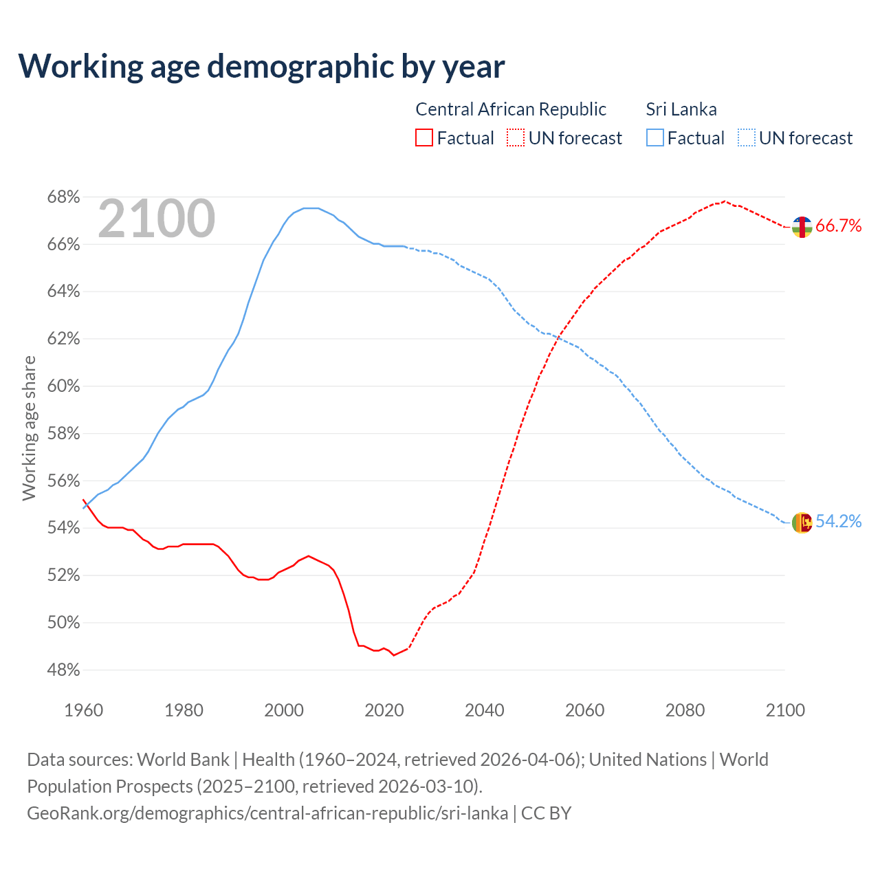 - The Central African Republic has 2.81M working age adults (aged 15-64) vs 14.6M in Sri Lanka.